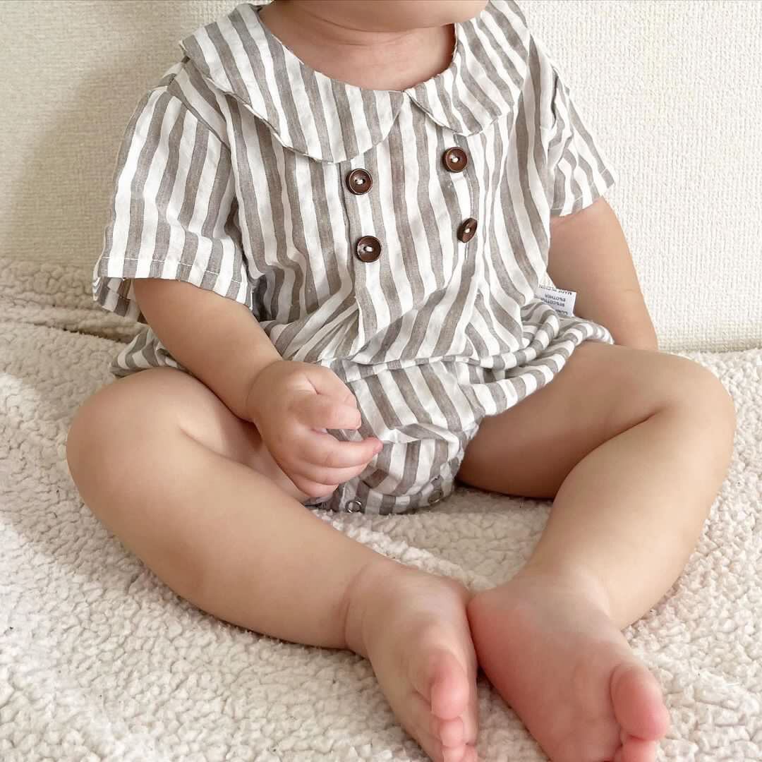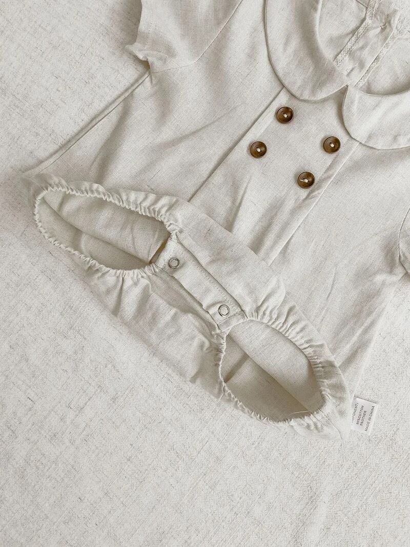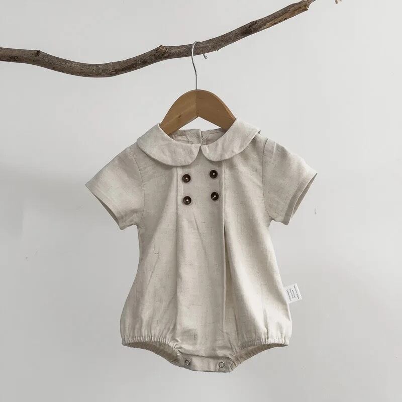 【取寄】可愛すぎて人気のリネン丸襟ロンパースの半袖ver.
