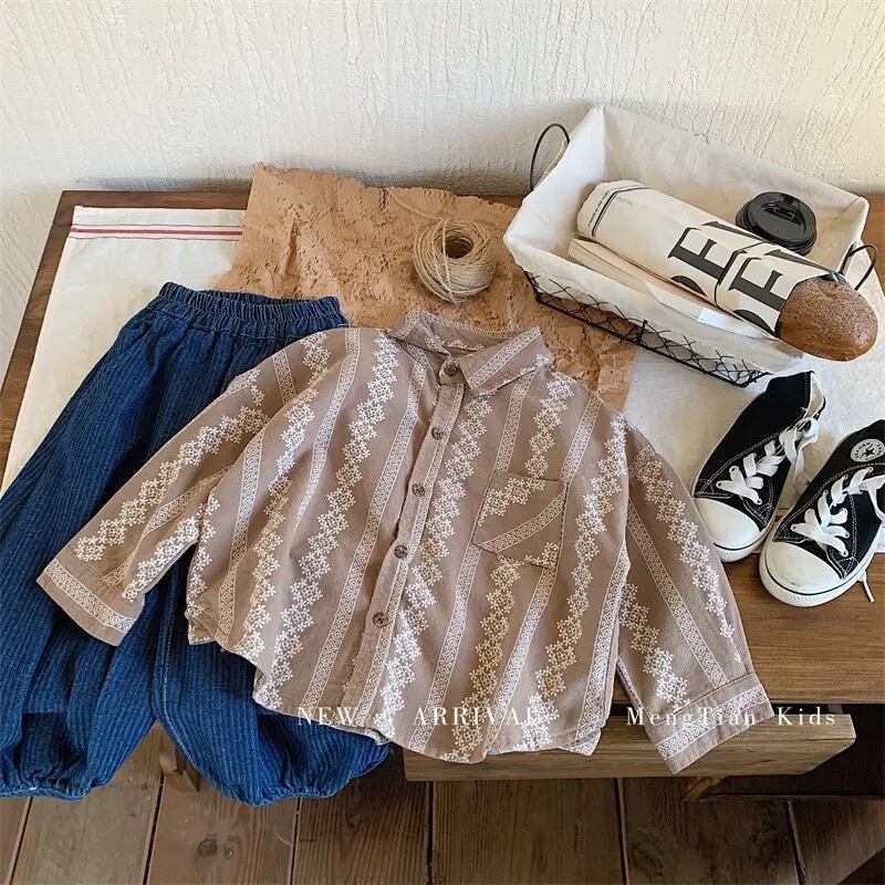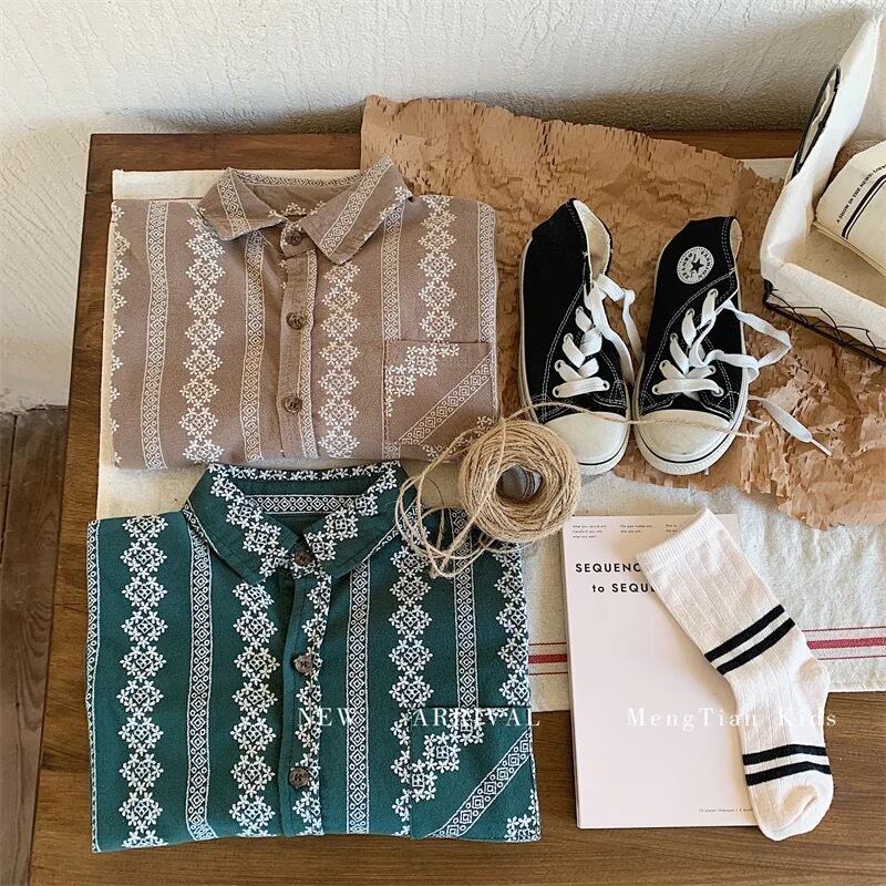 【取寄】BOYだって花柄を♡花柄刺繍風シャツ