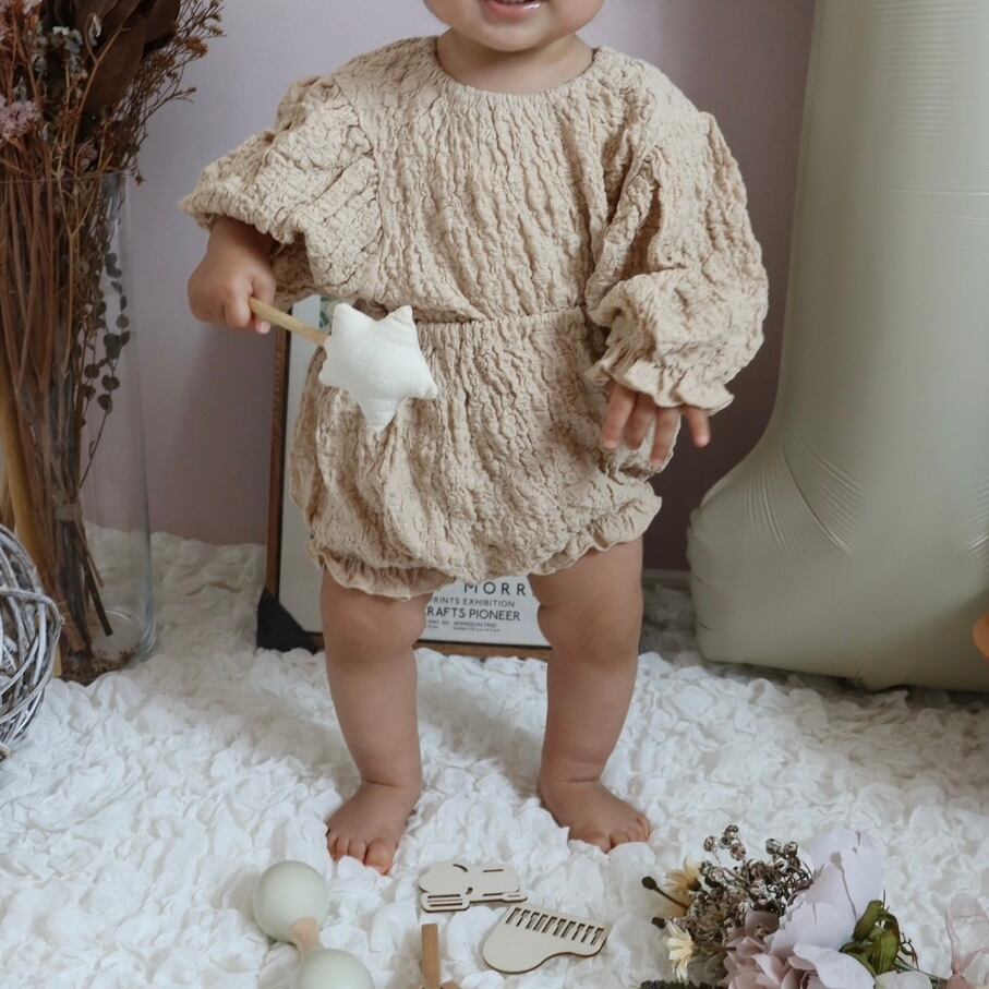 最高に可愛い!くしゅくしゅセットアップ・ロンパース!ユニセックスで使えるデザインと着心地の良さがこだわりです。どんな場面にも合わせやすいので、とってもおすすめです。