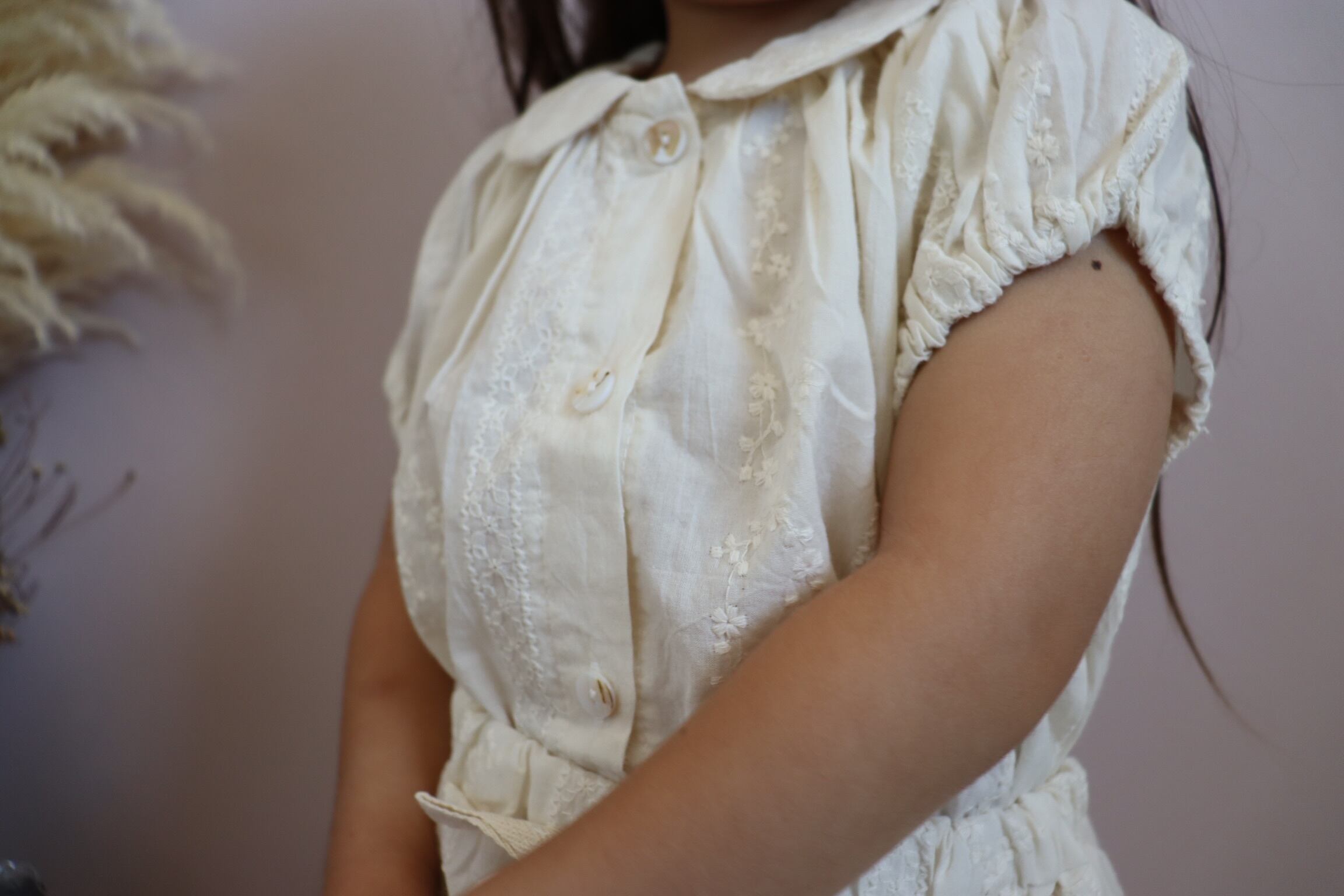 レース刺繍が施された上品でガーリーなデザインが、普段使いからお出かけやフォーマルな場面でも着こなせます。 セットアップであるため、コーディネートがラクチンに決まります。丸襟のトップスは肩パット付きでボリューム感があって、スタイルアップ効果も期待できます。 夏にも涼しく着られる、軽やかな素材を使用しています。日々のファッションスタイルに加え、特別なイベントでも活躍してくれること間違いなしです。男女問わず着用でき、着回し力も抜群です!夏のおしゃれに、是非♡