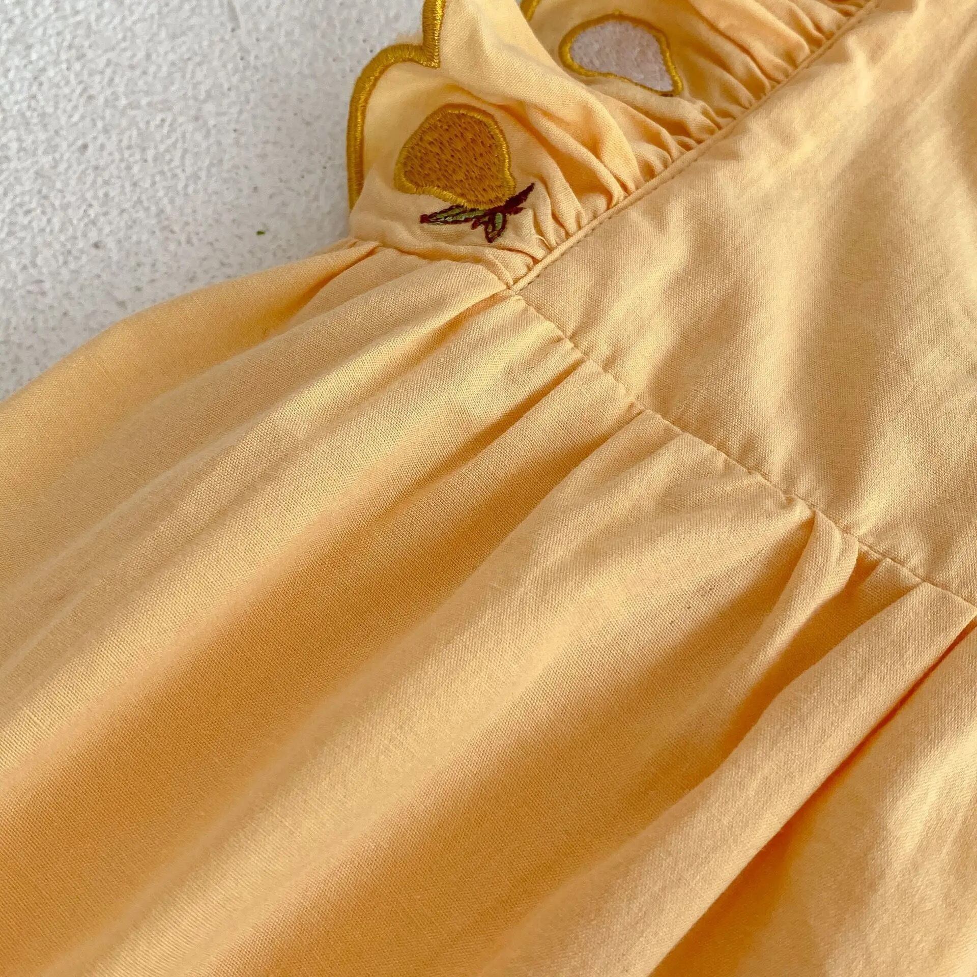 スカラップのフリルがショルダー全体にあり、梨も刺繍という洗練されたデザインが可愛く品のあるポイントです。