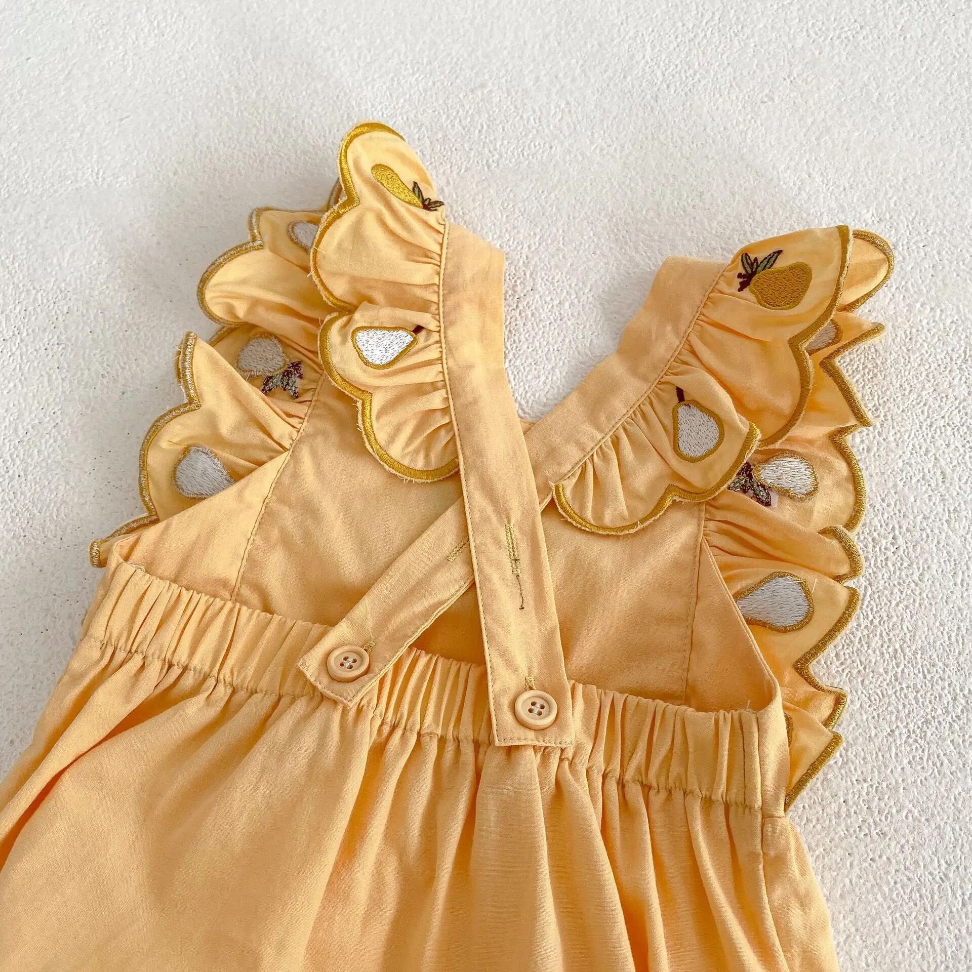 【取寄】スカラップフリルとpear刺繍がおしゃれな西欧風ロンパース