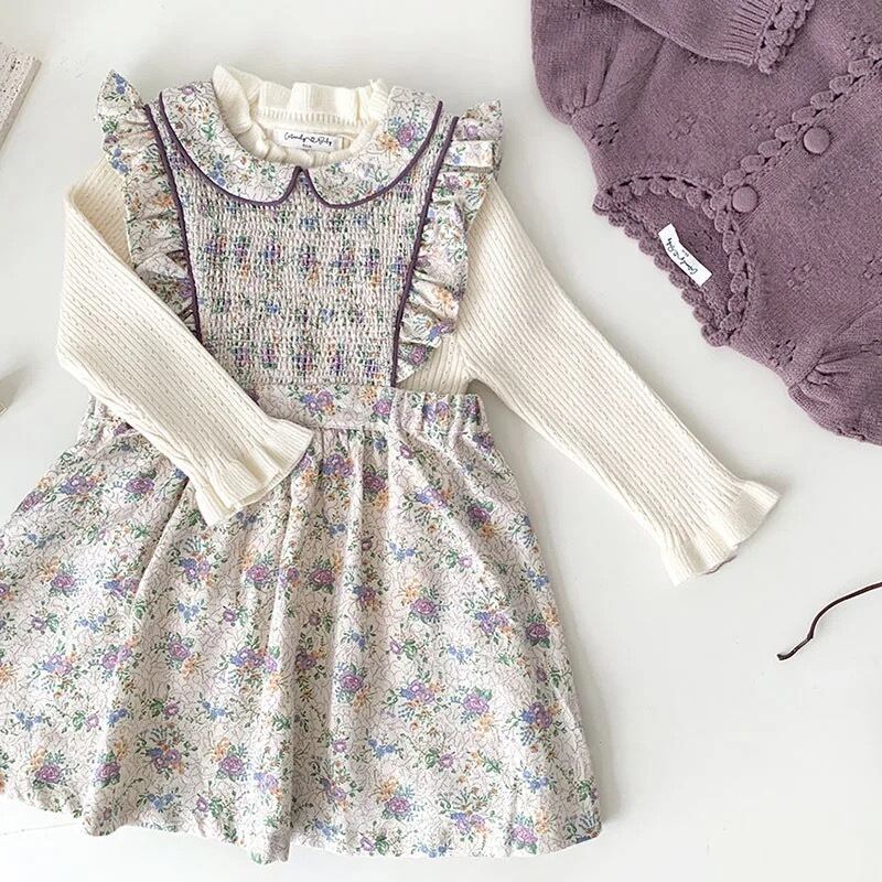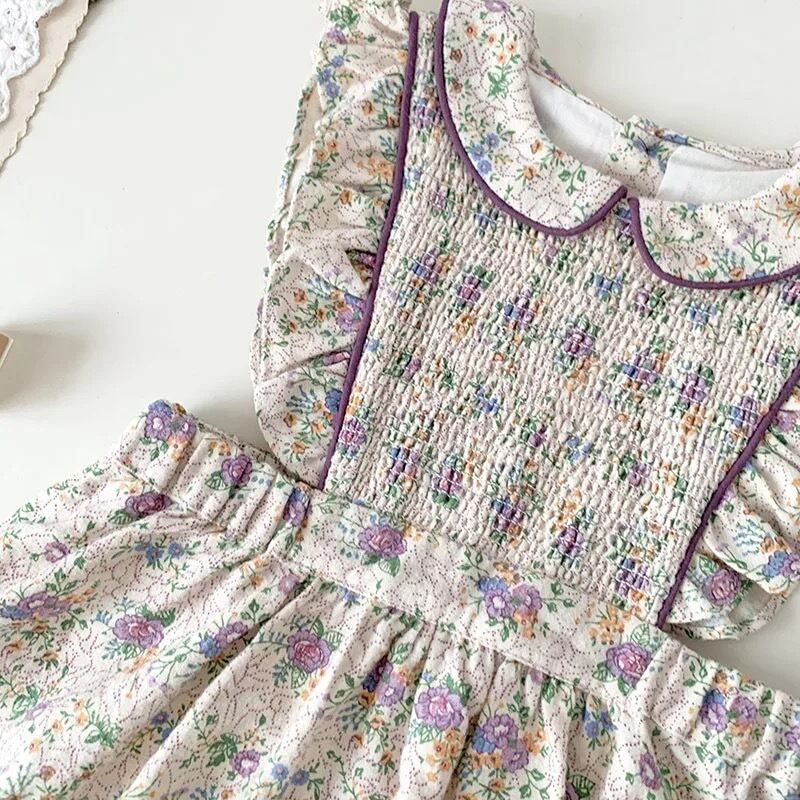 【取寄】細部までこだわり満載なシャーリング花柄エプロンワンピース