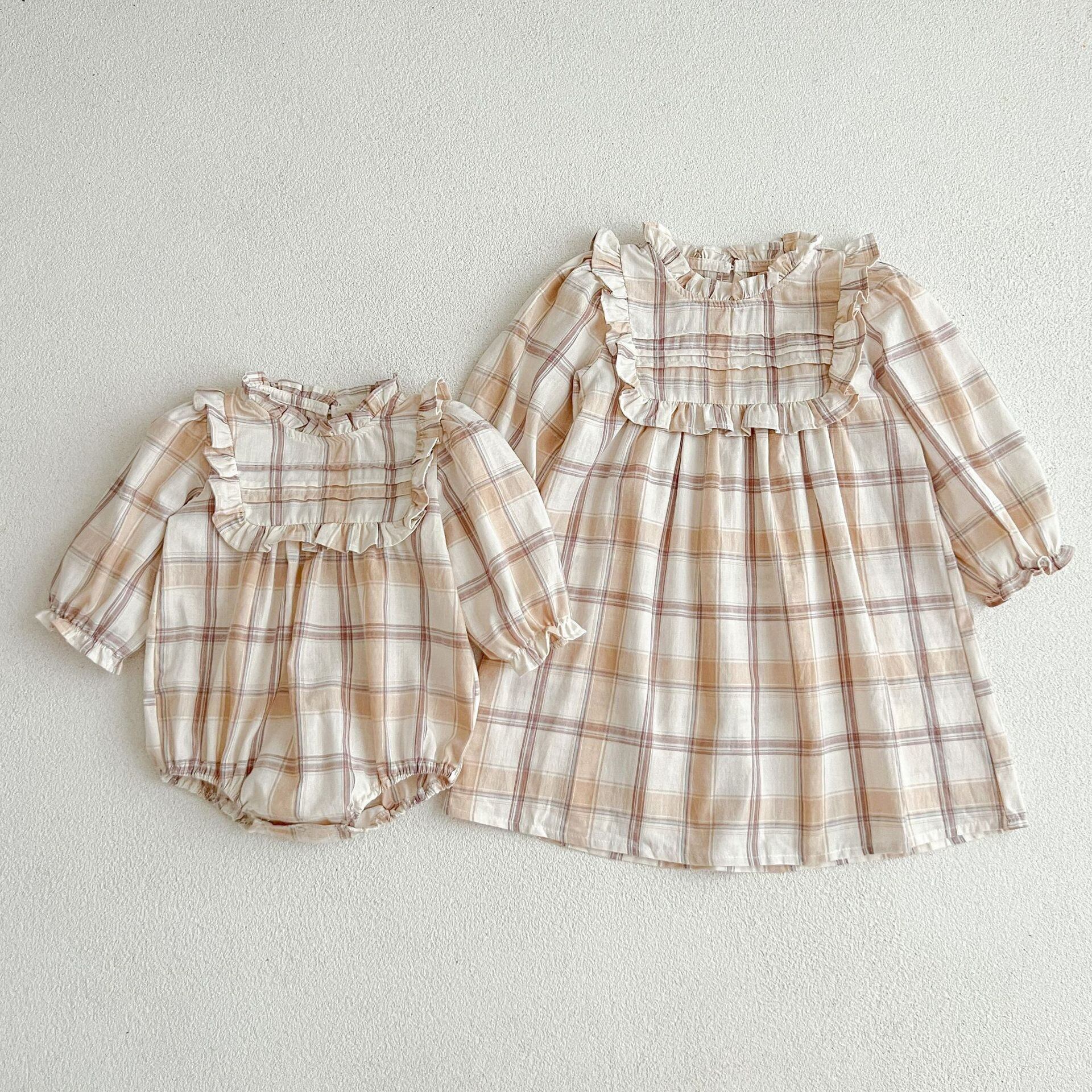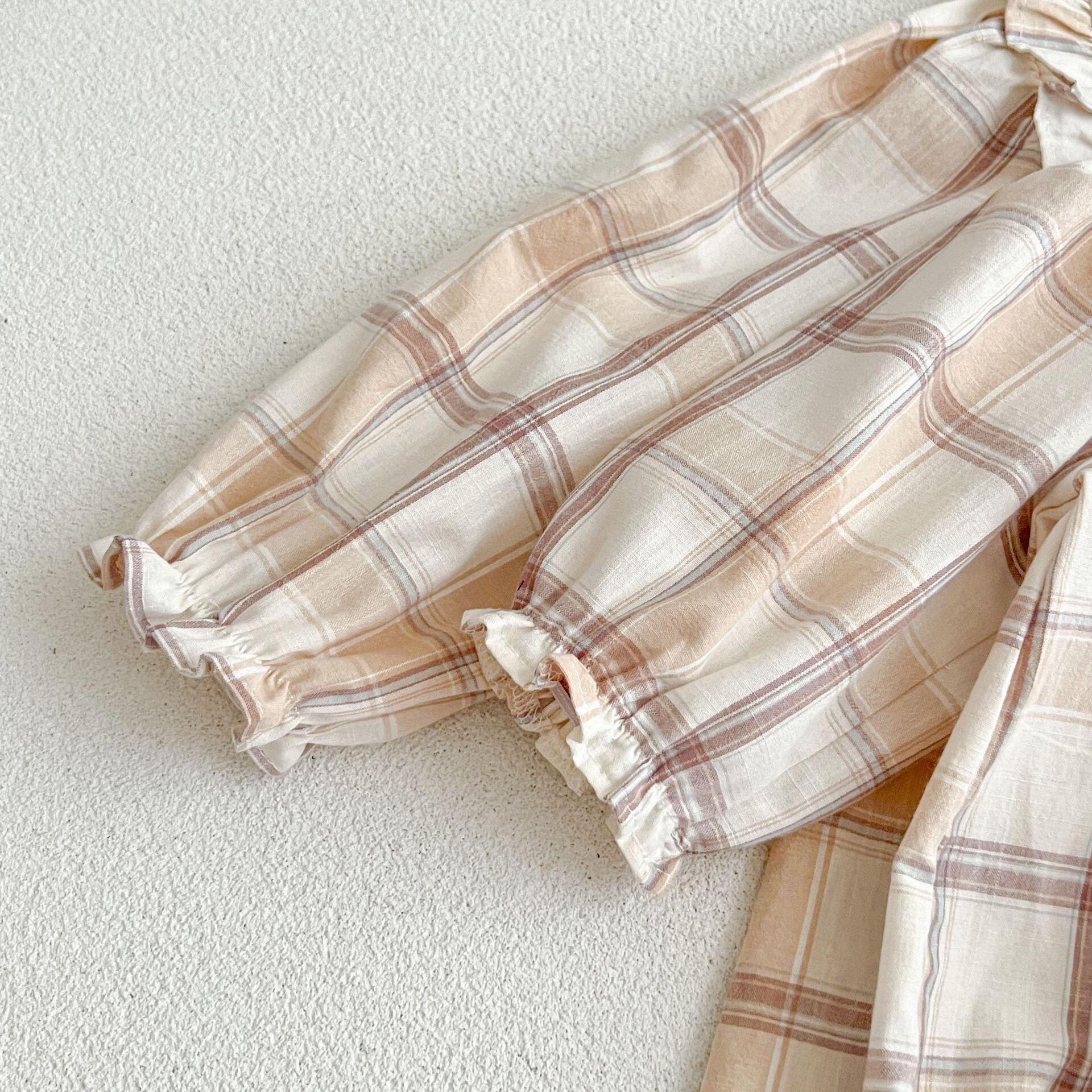 ふんわりした雰囲気の淡色チェックがかわいいロンパースです♡