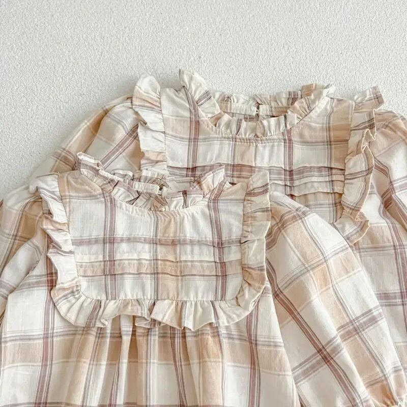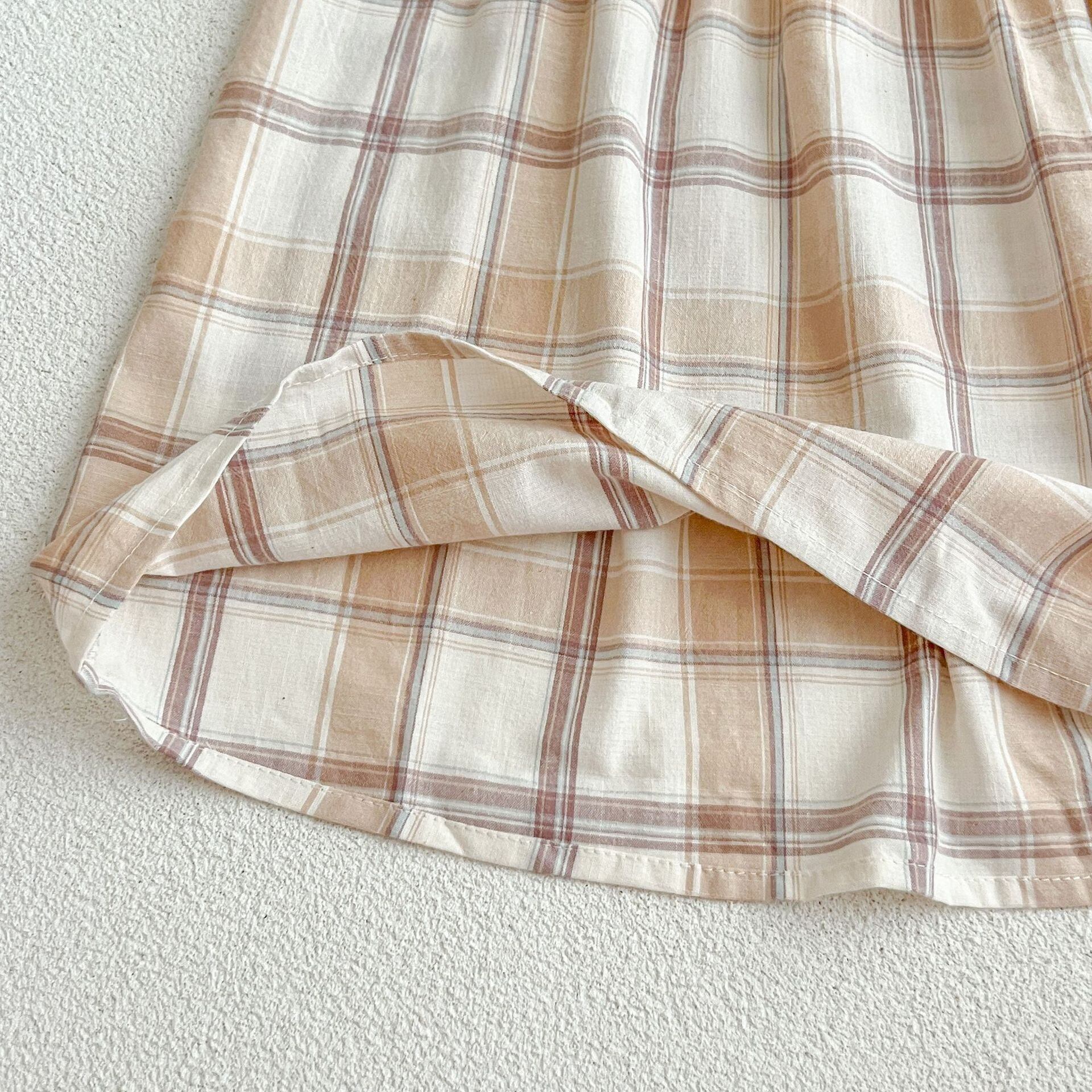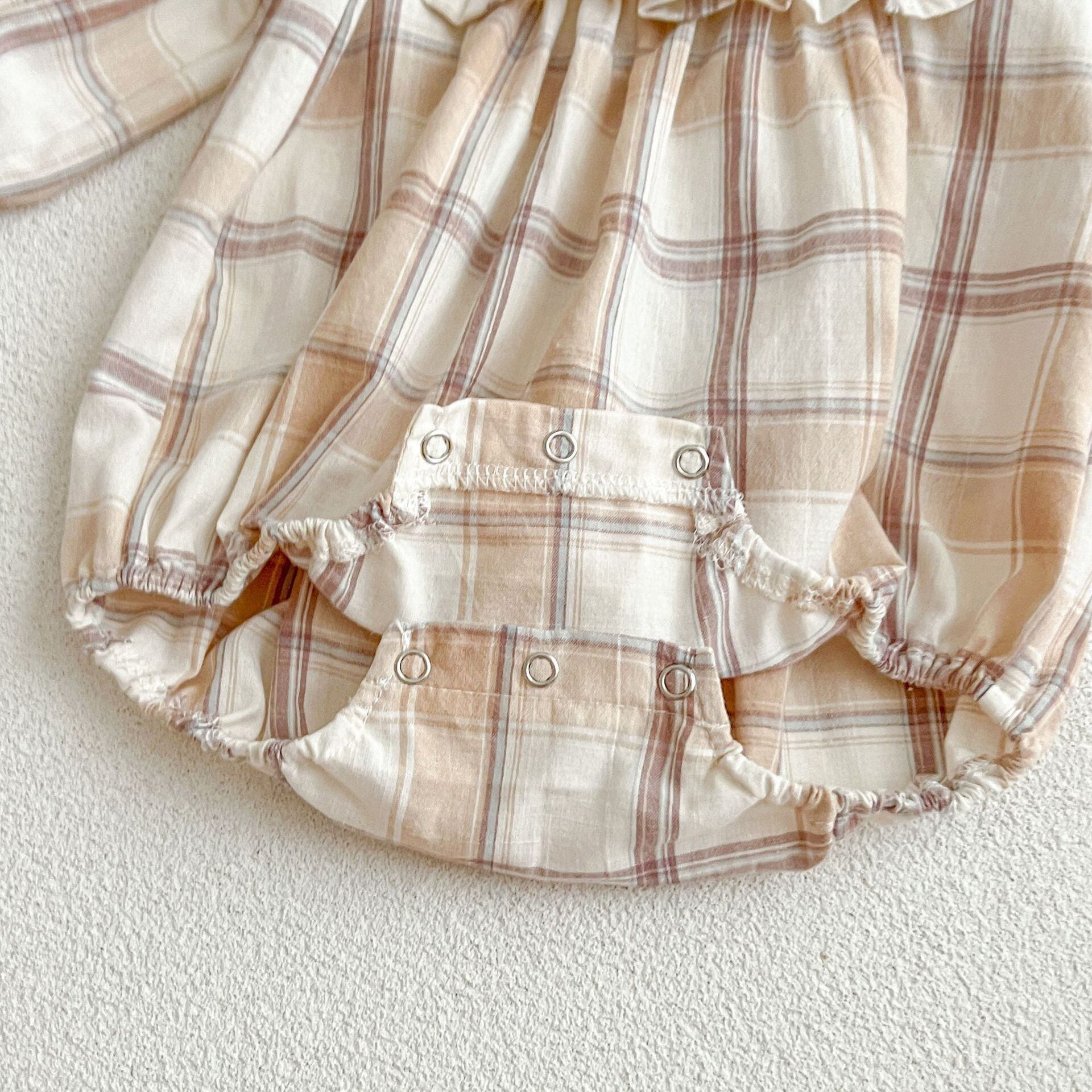 ふんわりした雰囲気の淡色チェックがかわいいロンパースです♡