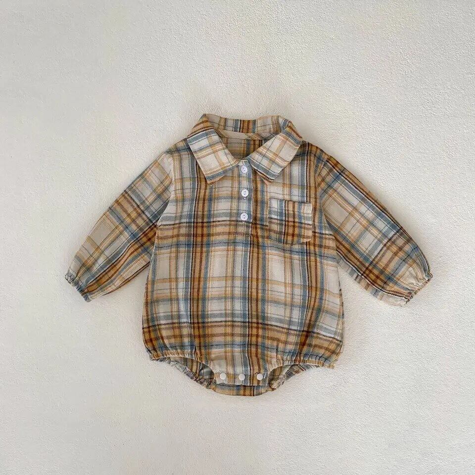 男の子なら1枚は持っておきたいチェックシャツのロンパースです♡