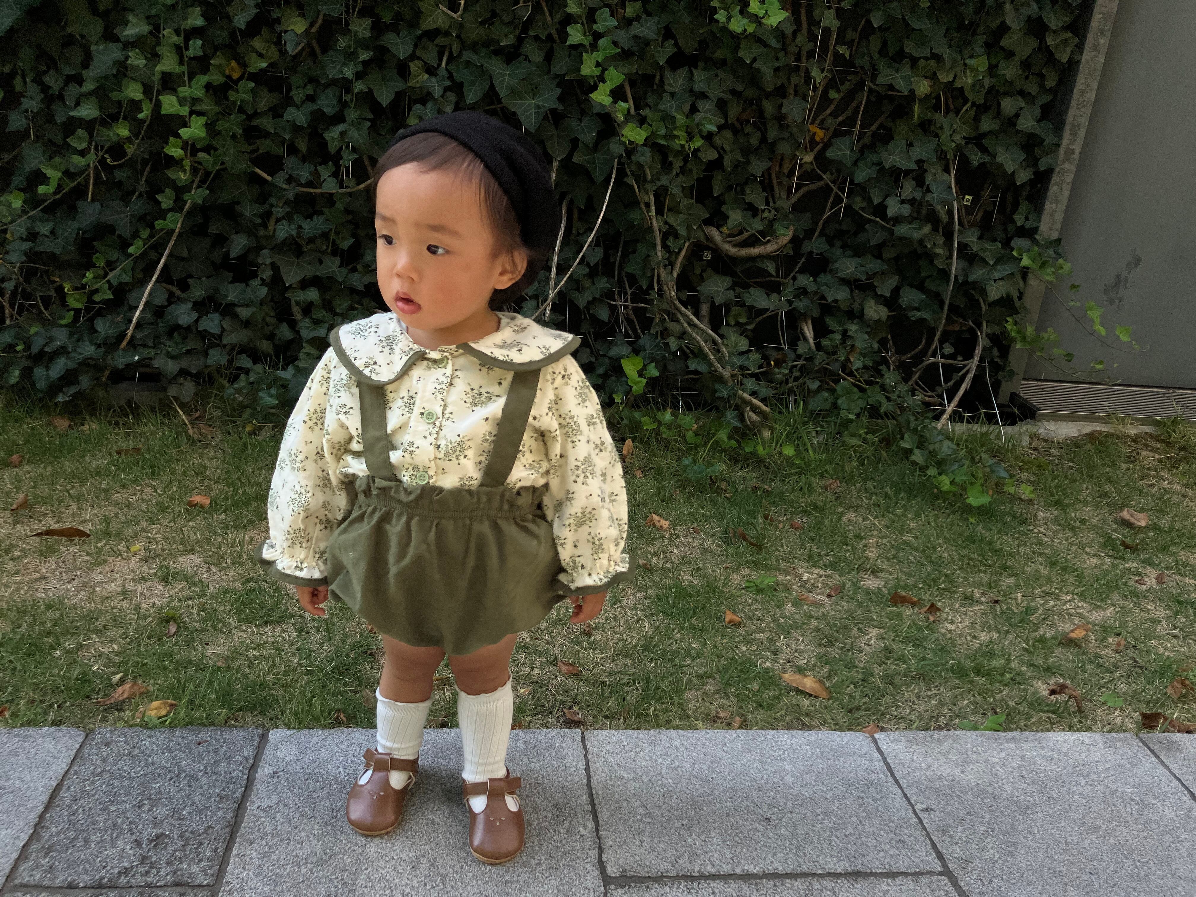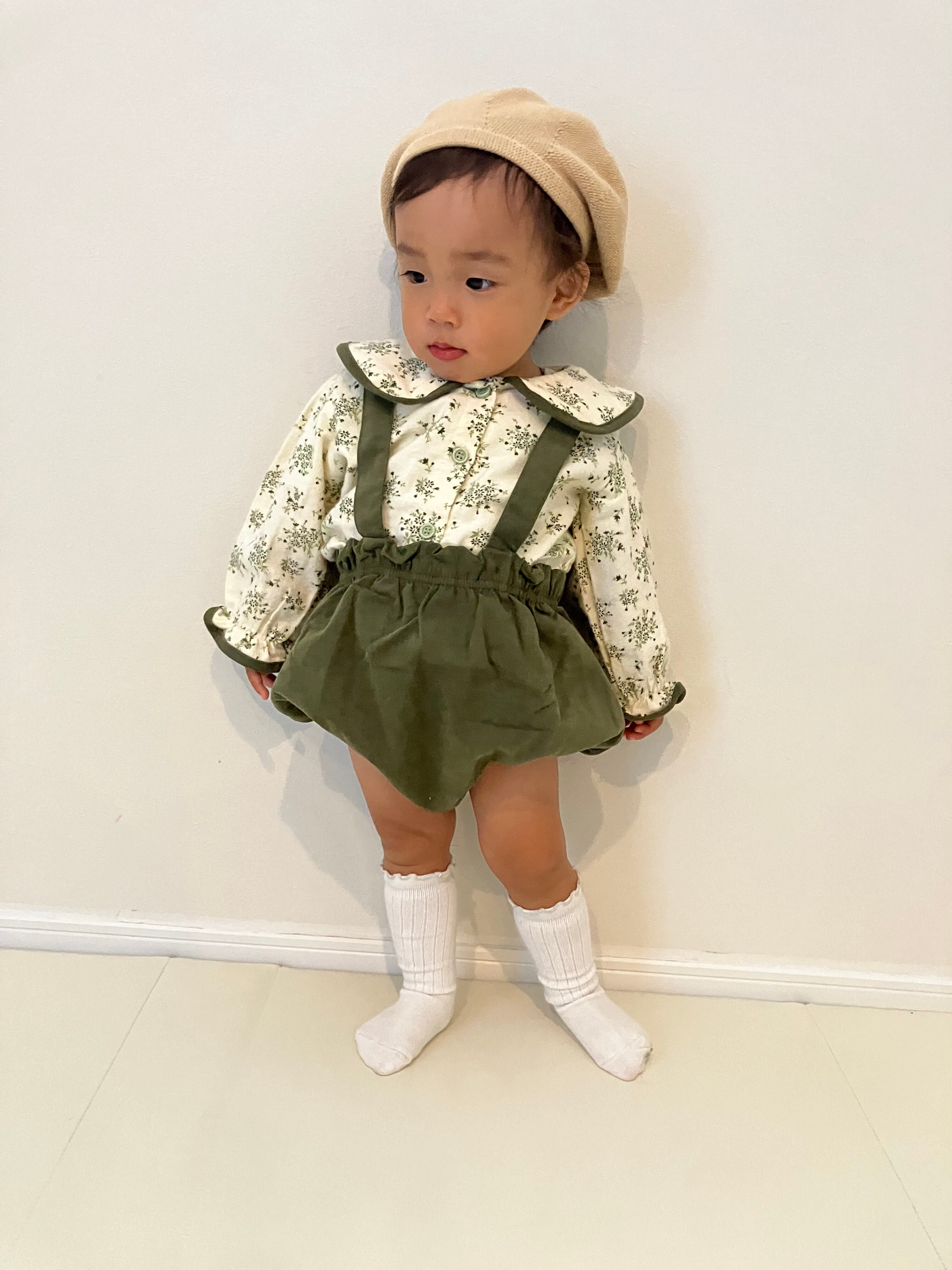 丸襟の花柄ブラウスとサスペンダーブルマのセットです♡