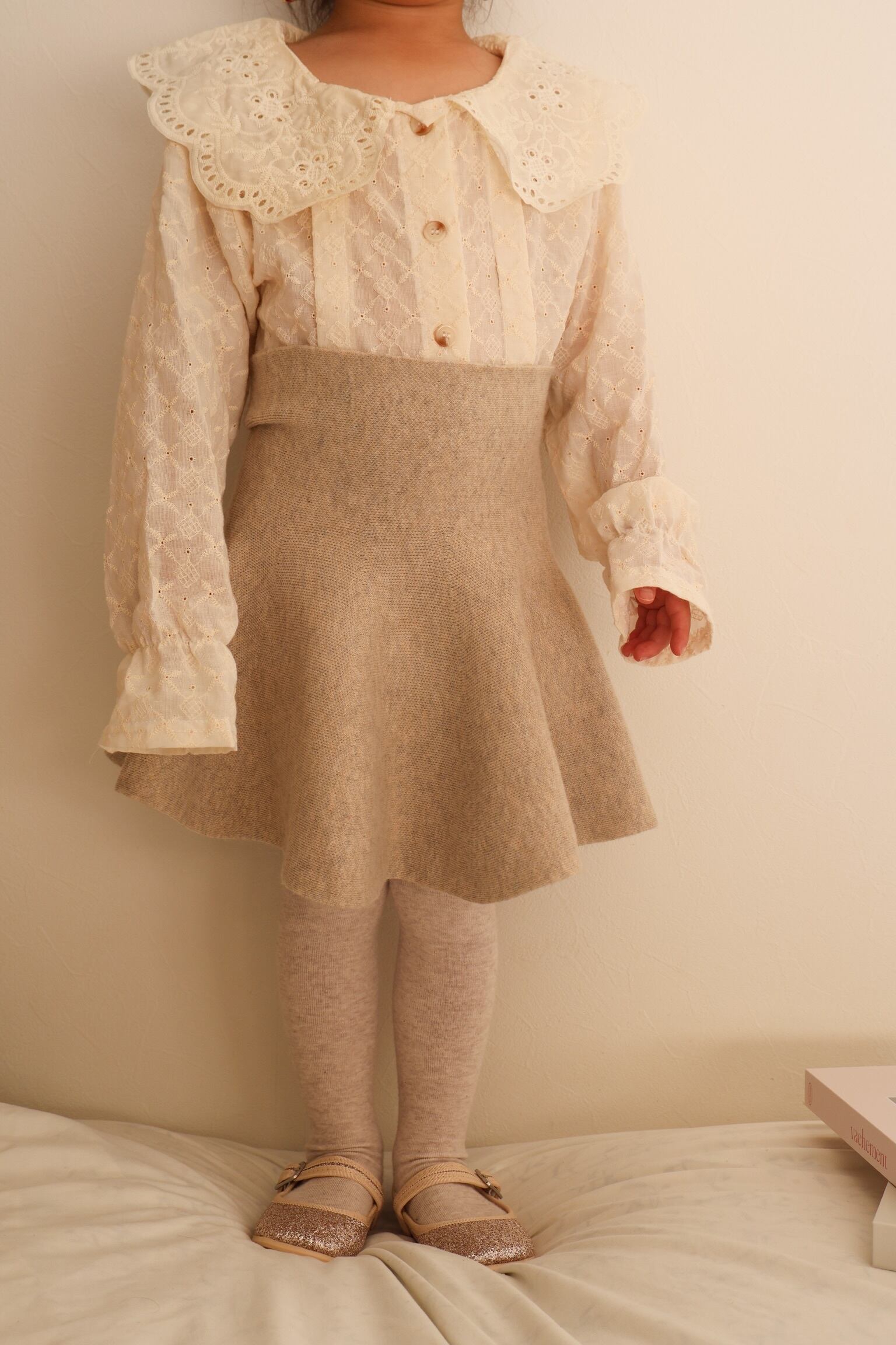 ⇨着用感: 割とゆとりがあるけど落ちてくる事もなく、いい具合の膝丈で着れて、でもまだ来年も着れそうなサイズ感がちょうどよかったです。生地がとっても柔らかくて着やすそうでした。