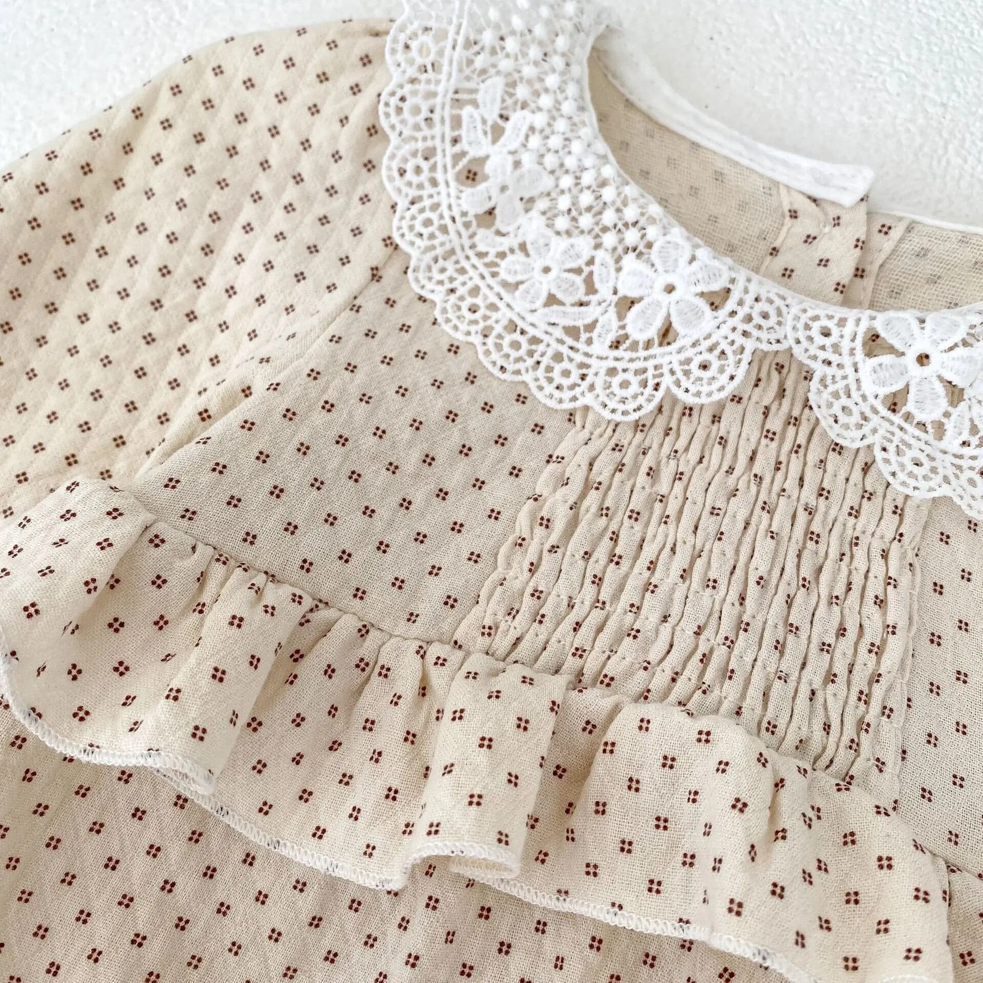 レース襟とフリルがポイントのレトロガーリーなロンパースです♡