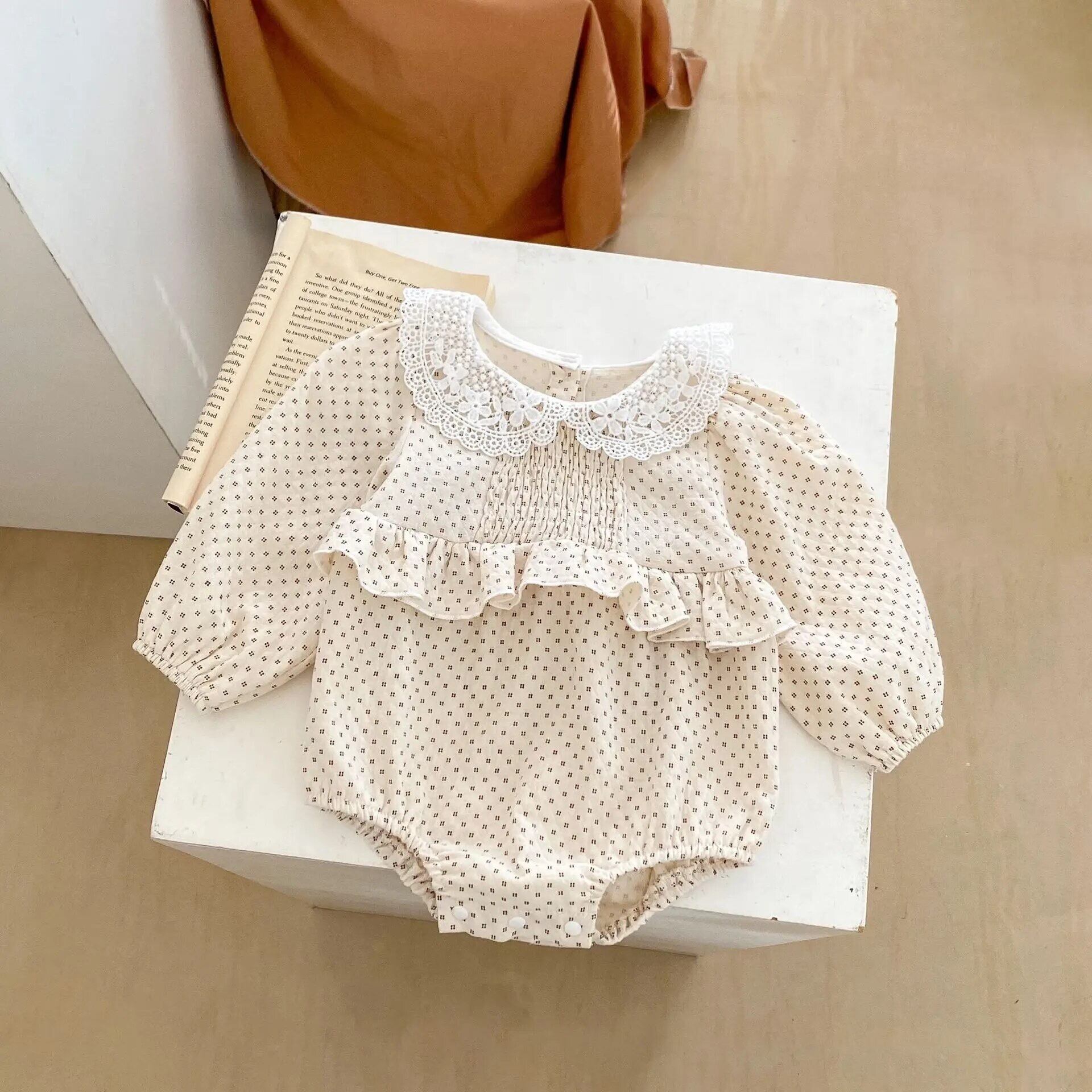 【取寄】レトロ可愛いレース襟のフリル付きロンパース