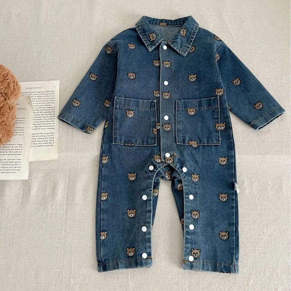 くまちゃん好きさん必見!の、男の子でも女の子でも1枚でおしゃれに可愛く着られるbear柄のデニムオールインワンです!