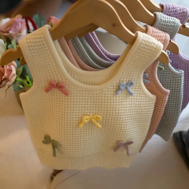 流行りのリボンがカラフルにあしらわれたニットベストです♡