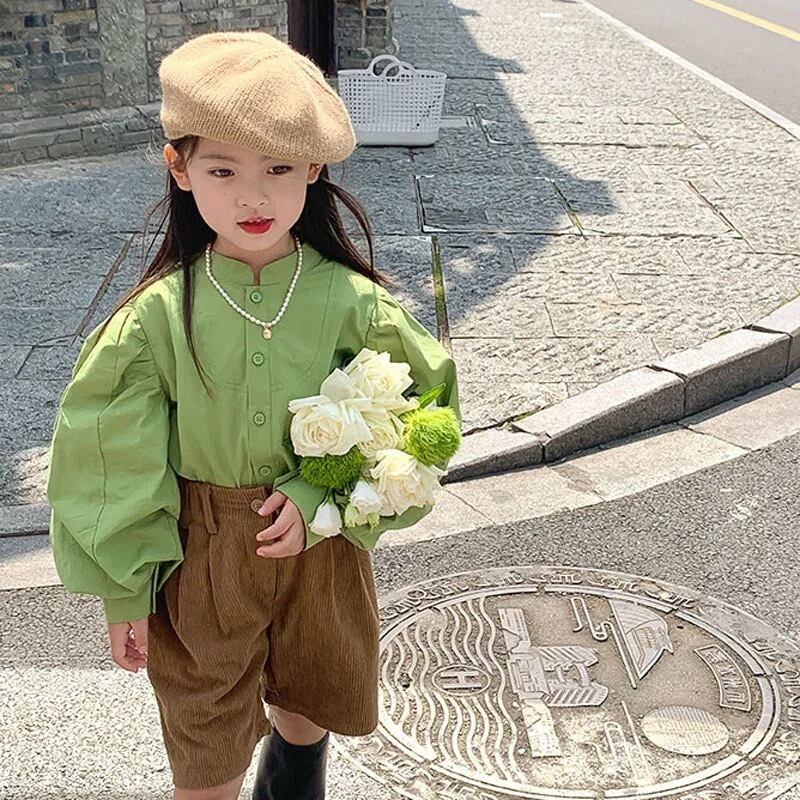 【取寄】ボリューム袖が目を惹くノーカラーブラウス