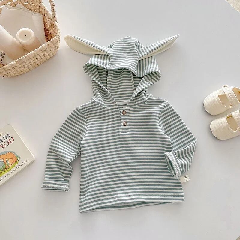 【取寄】うさ耳フードできゅんとするボーダーパーカー