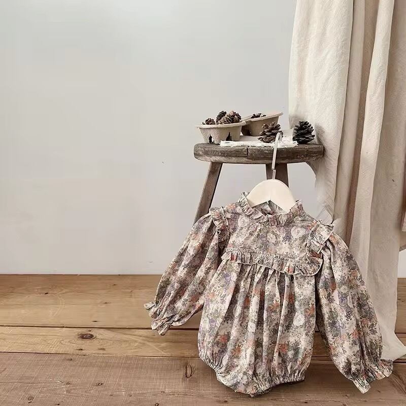 ヴィンテージ風なおしゃれは花柄がとにかく可愛すぎるロンパースです♡