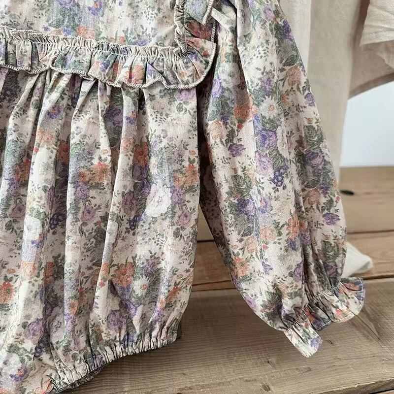 【取寄】ハイセンスなヴィンテージ風フリルフラワーロンパース