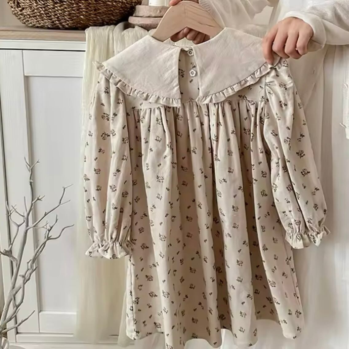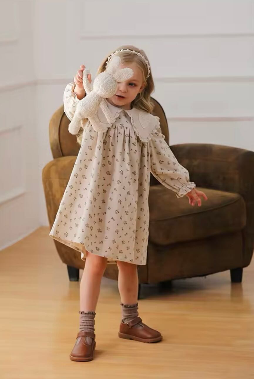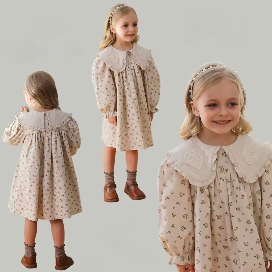 【取寄】ハートワッペン付きのフリル襟花柄ワンピース