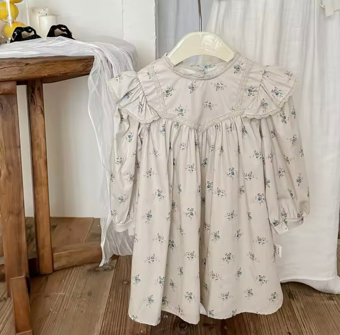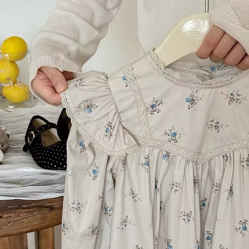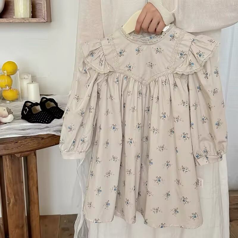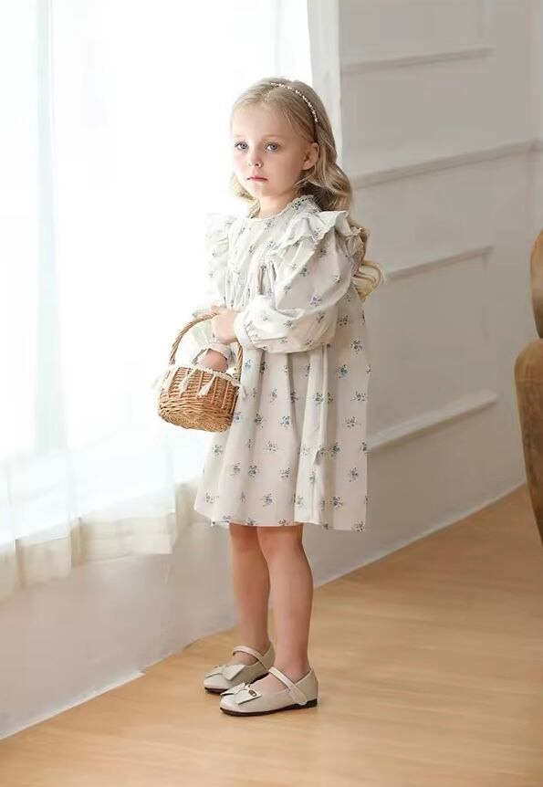 【取寄】寒色フローラルで落ち着いた上品なお嬢さんになれるガーリーワンピース