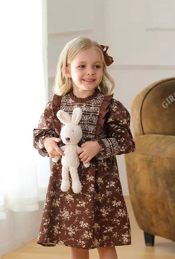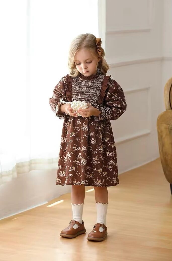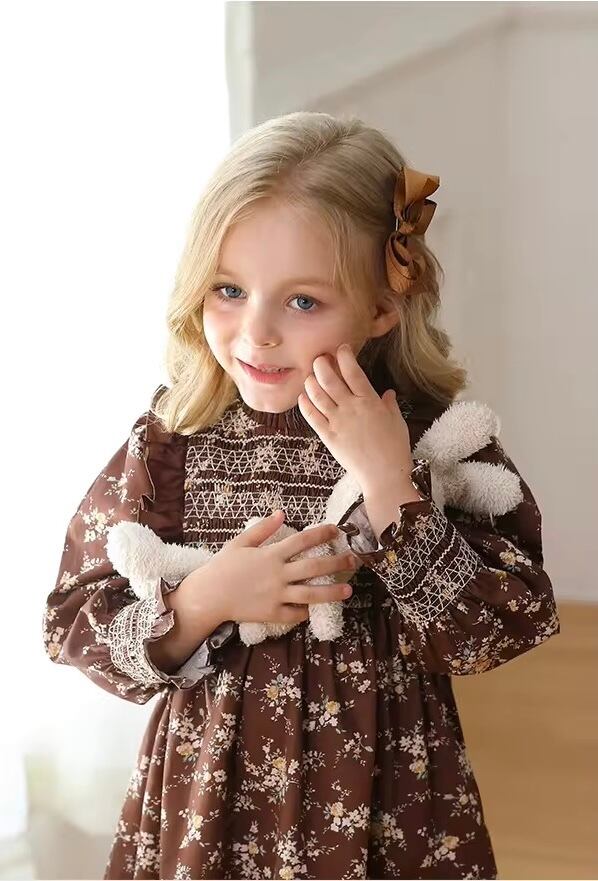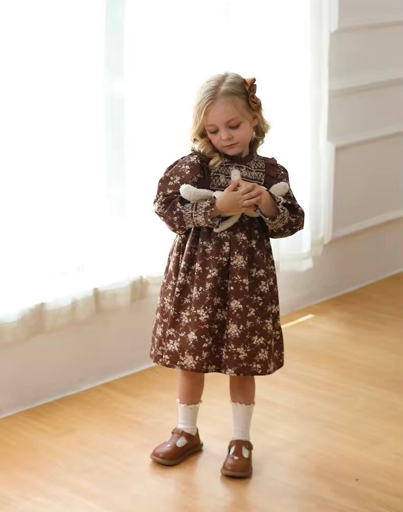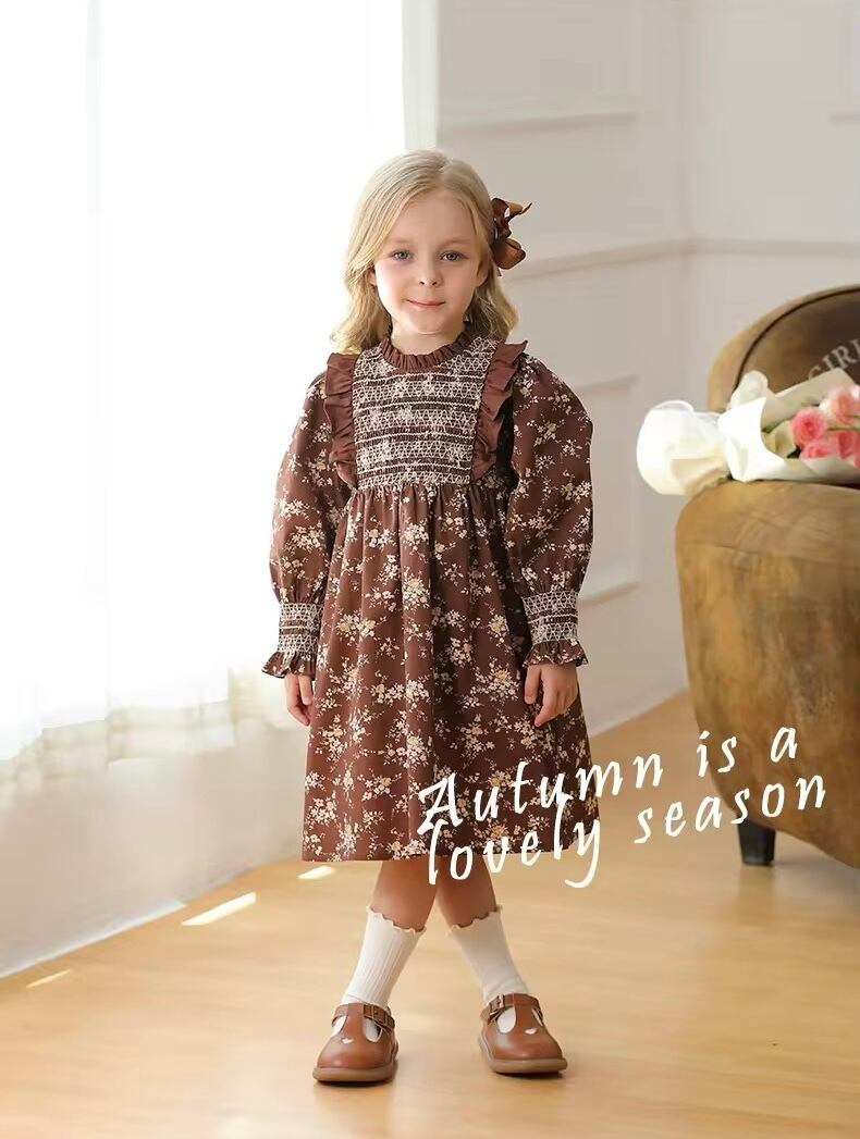 秋冬こそ着たくなる!英国風なスモッキングフリルの花柄ワンピースです♡