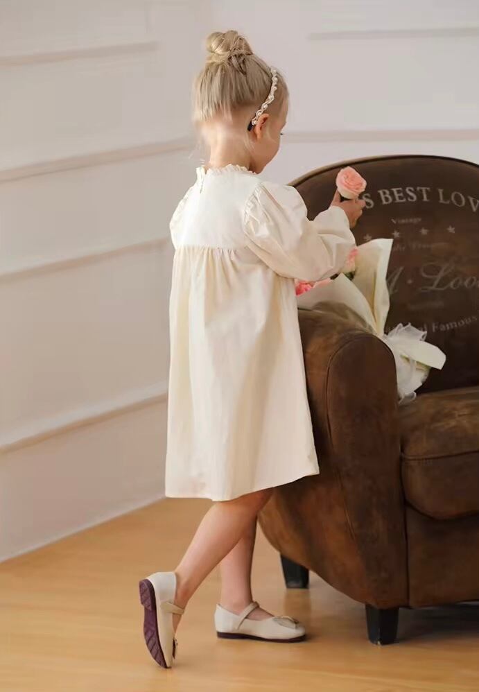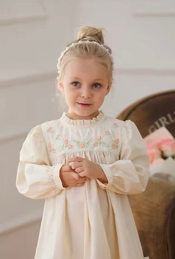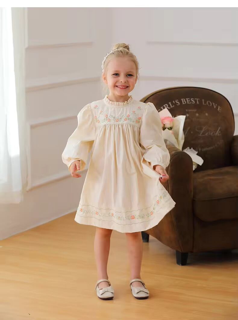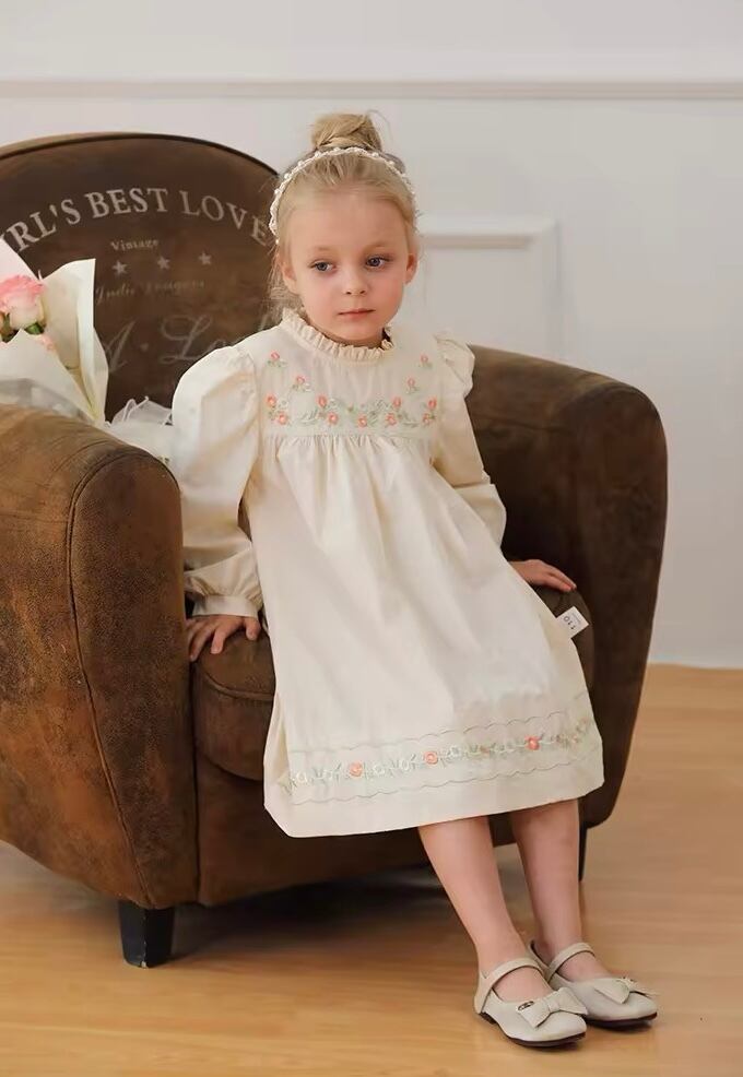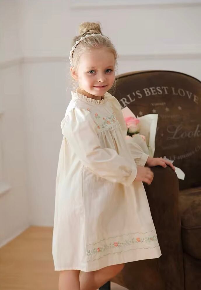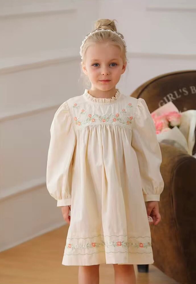 【取寄】パッと明るくなる刺繍たっぷりの淡色フリルワンピース