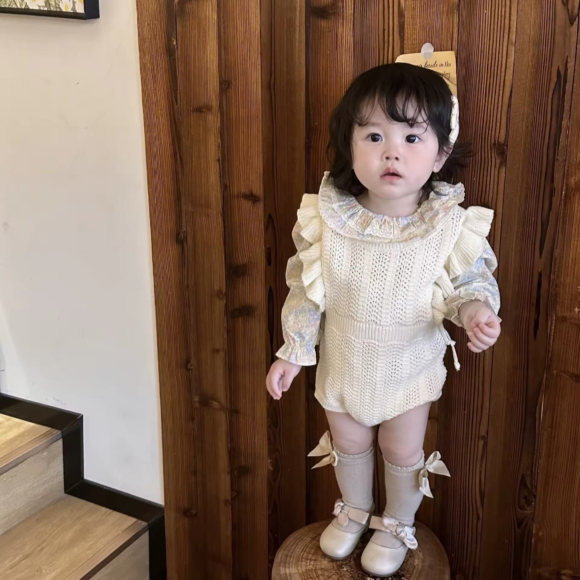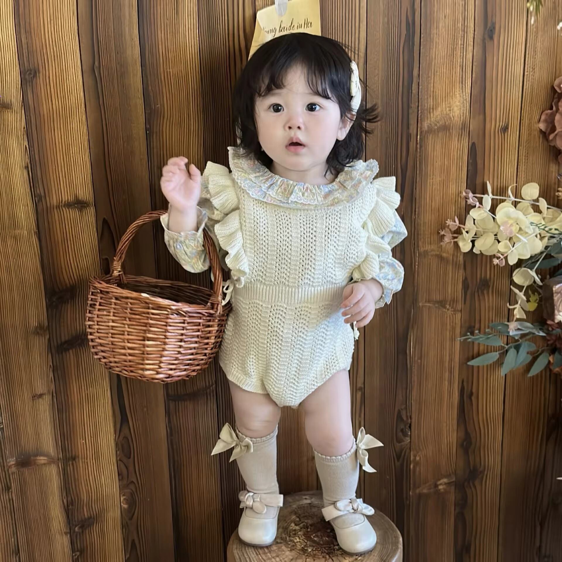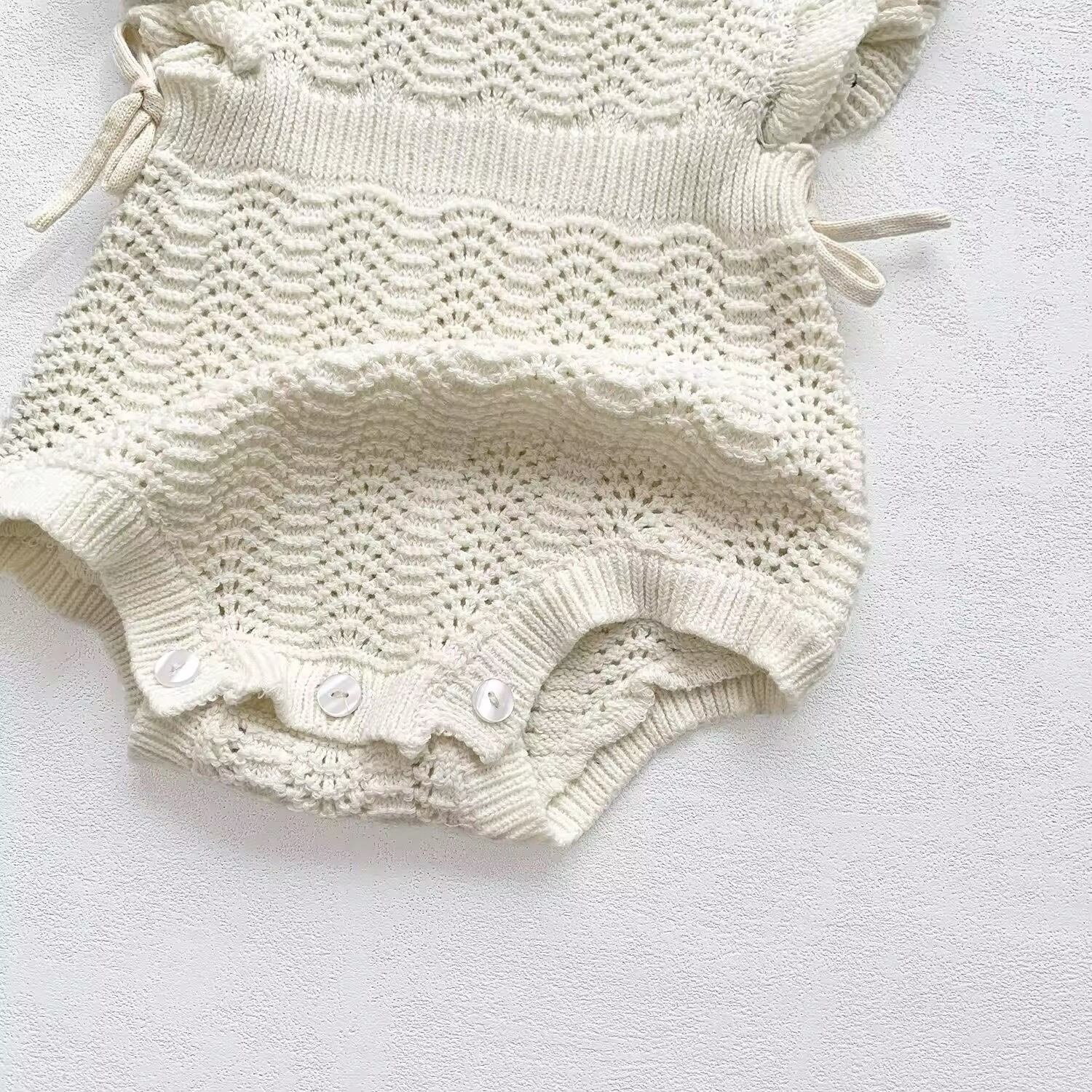 【取寄】フリルとリボンにキュンとくるニットロンパース