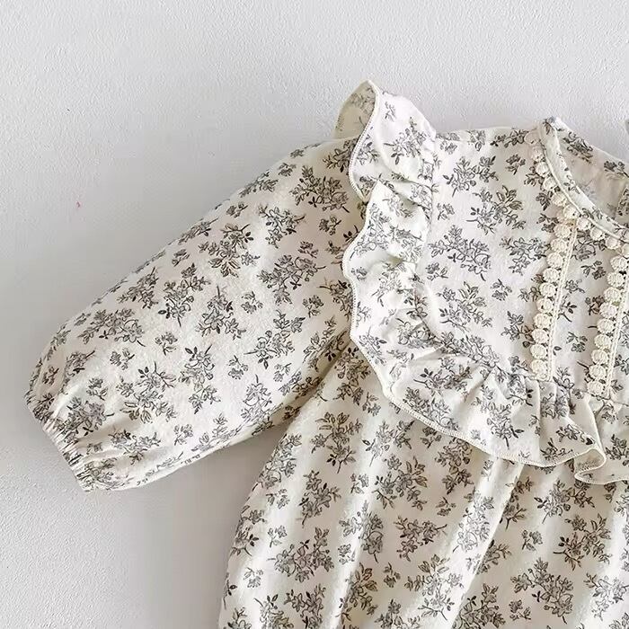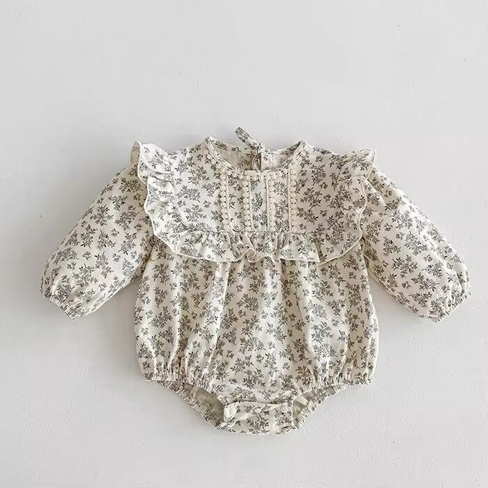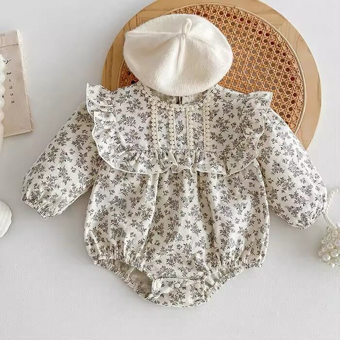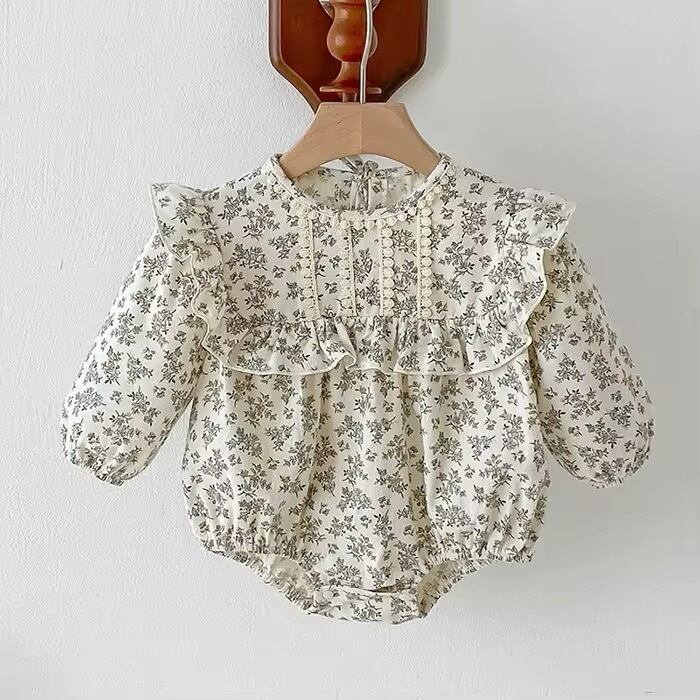 【取寄せ】フリルガーリーがポイントの淡色花柄ロンパース