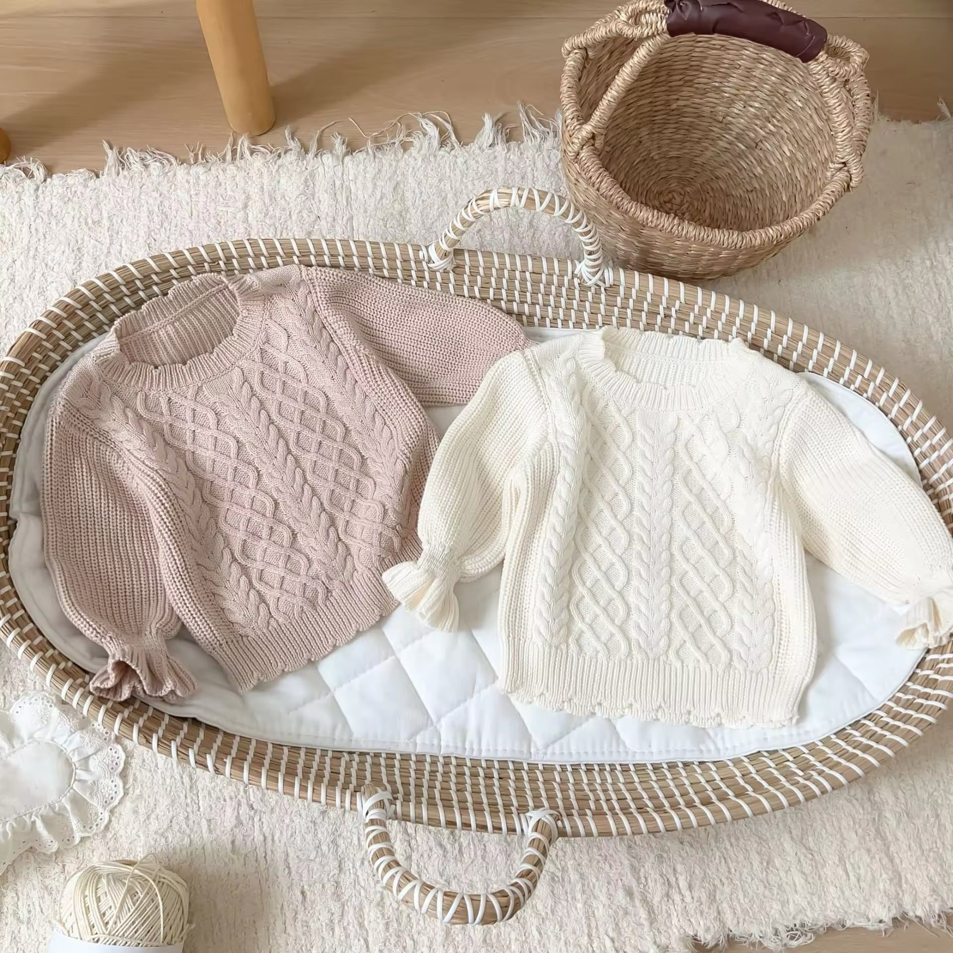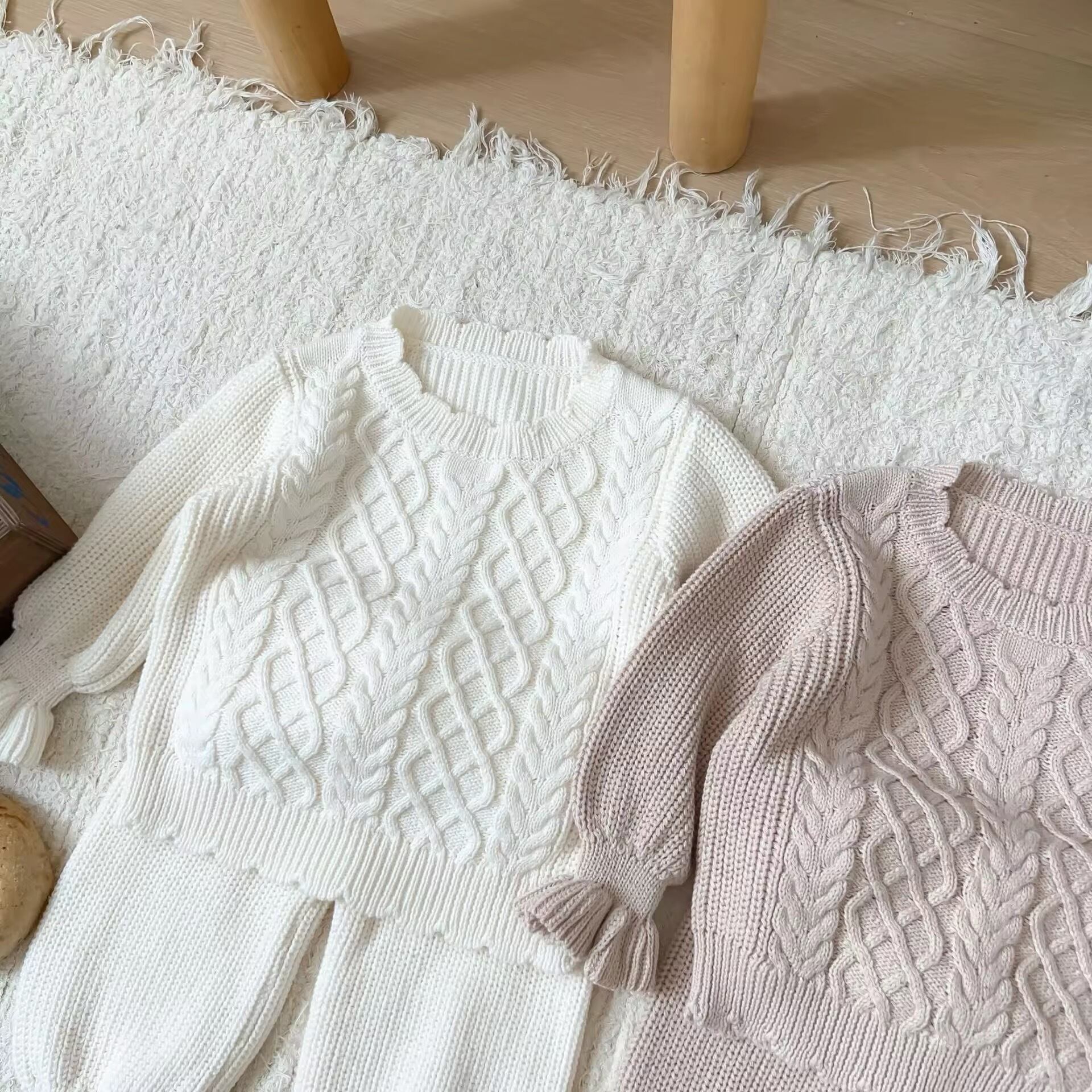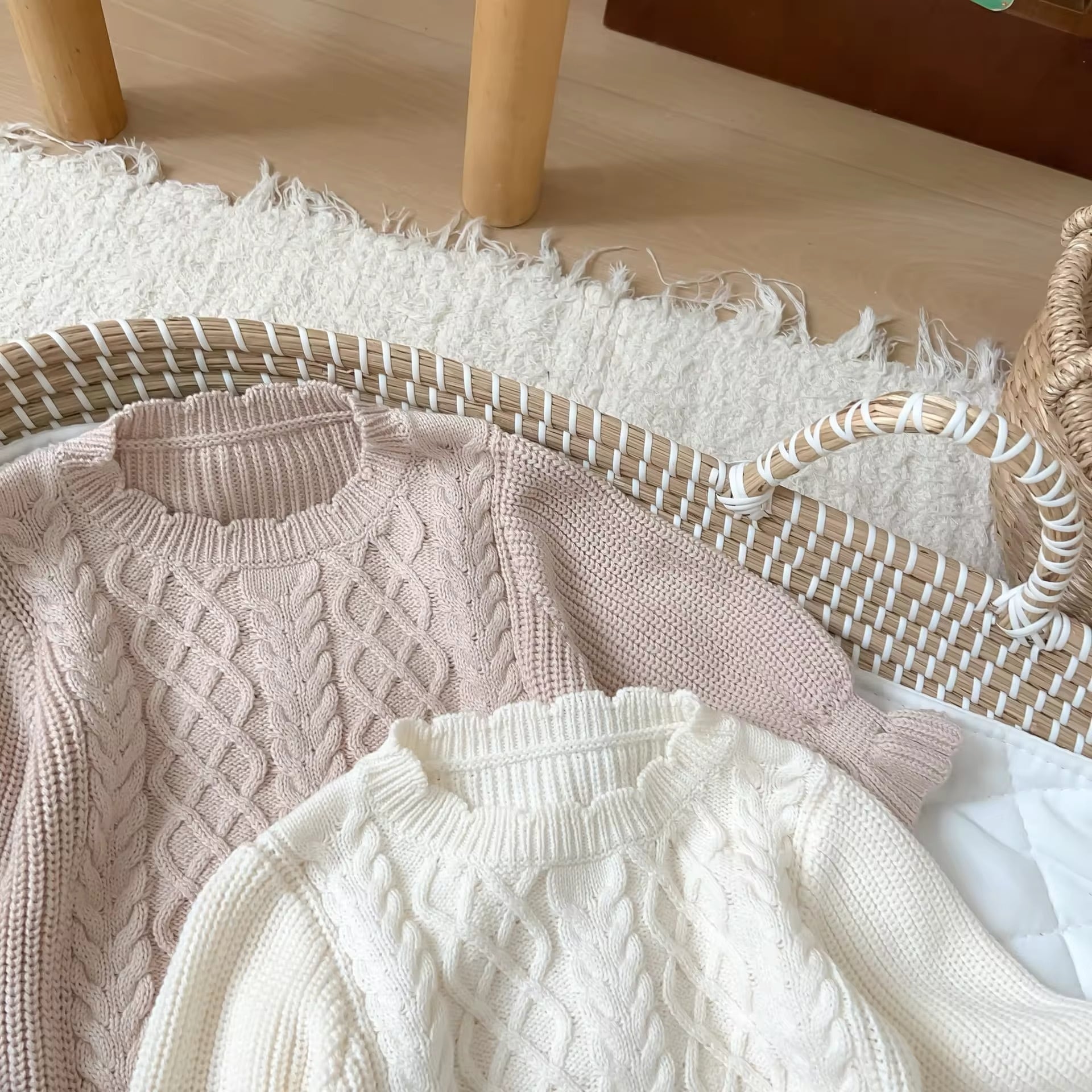 【取寄】くしゅっとが可愛いスカラップケーブルニットトップス