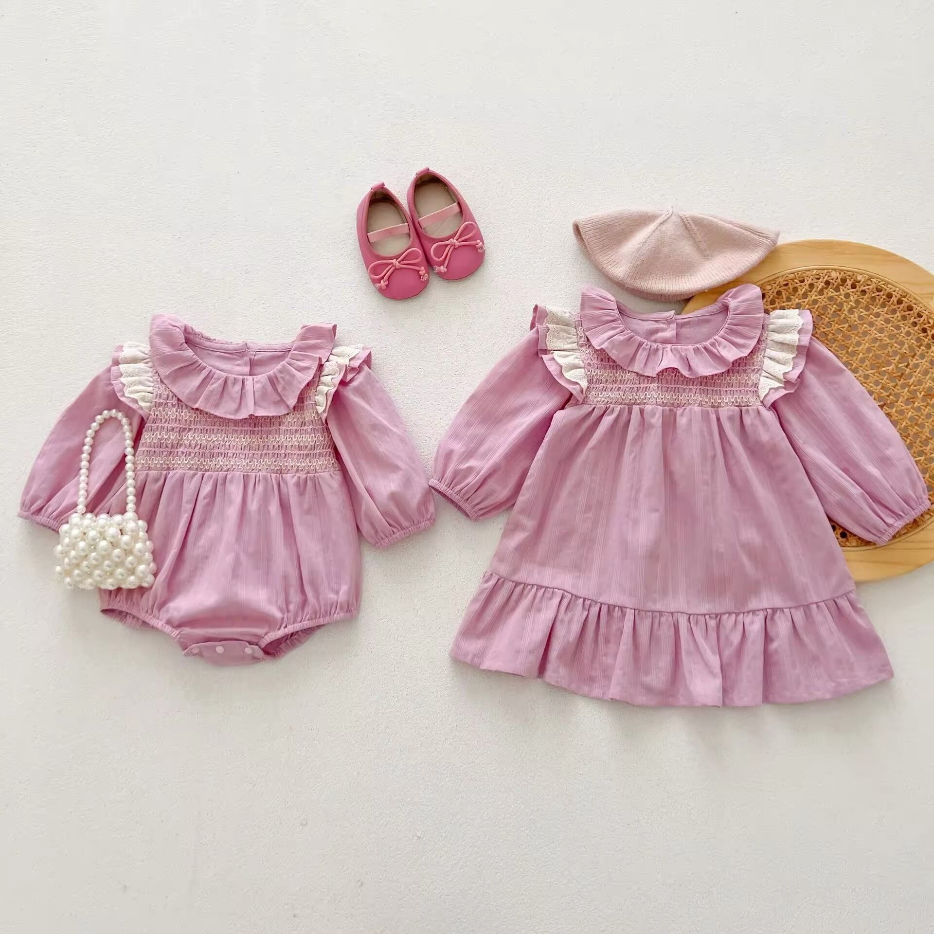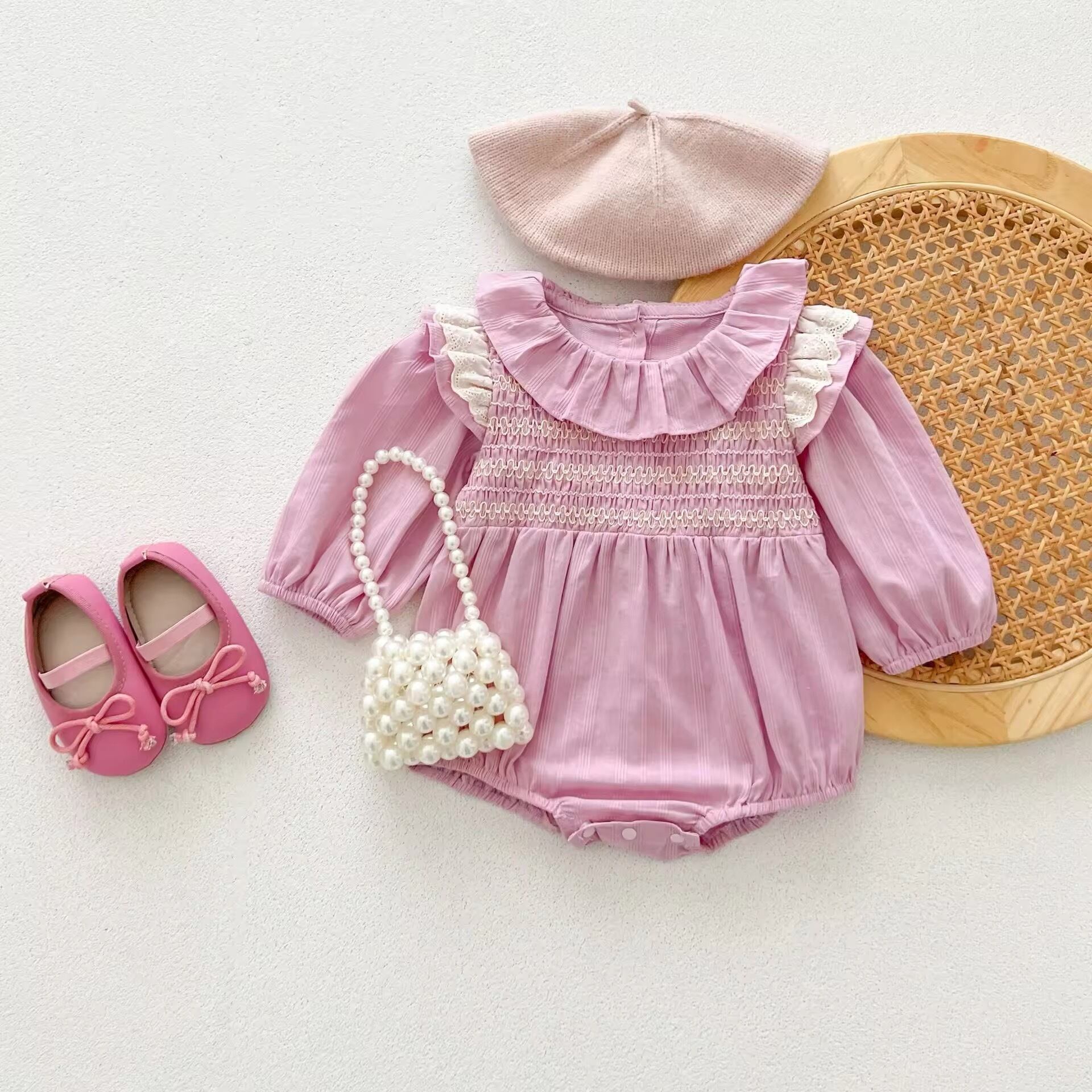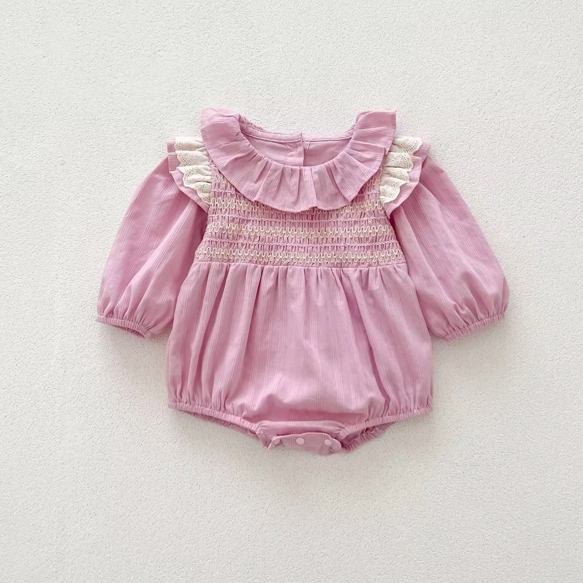 【取寄】甘々が可愛すぎるスモッキングフリルロンパース