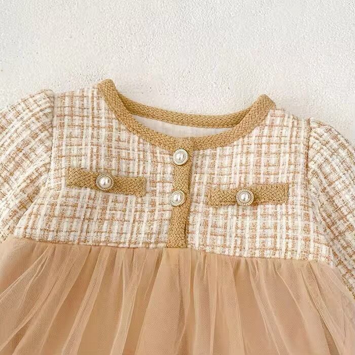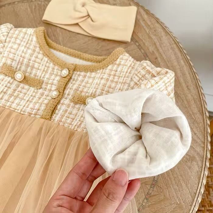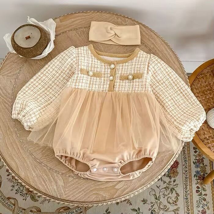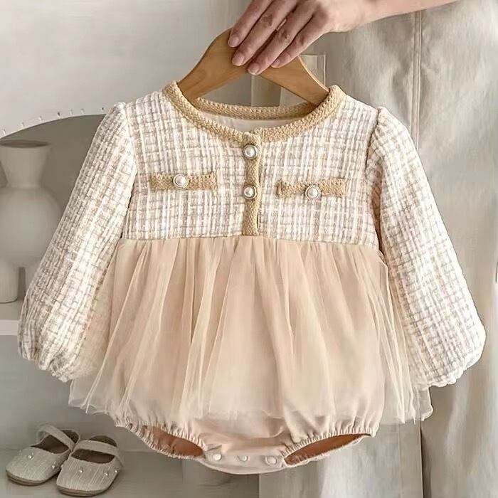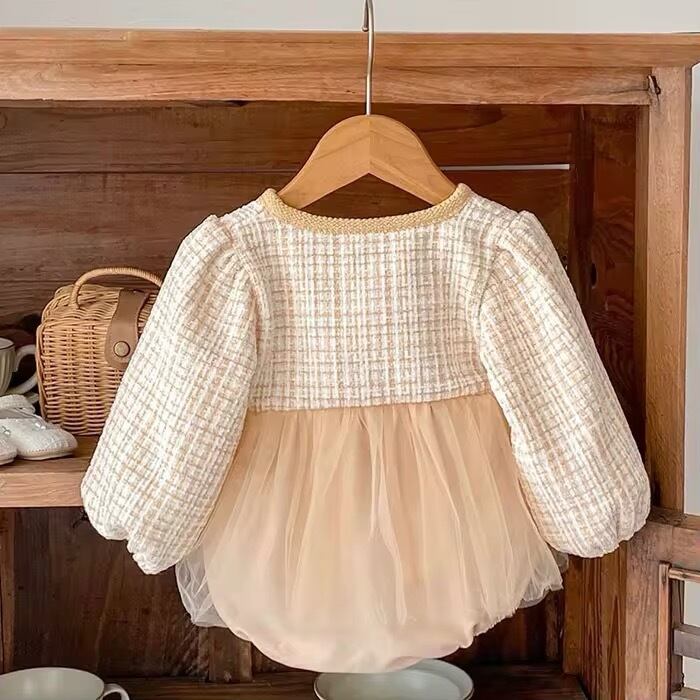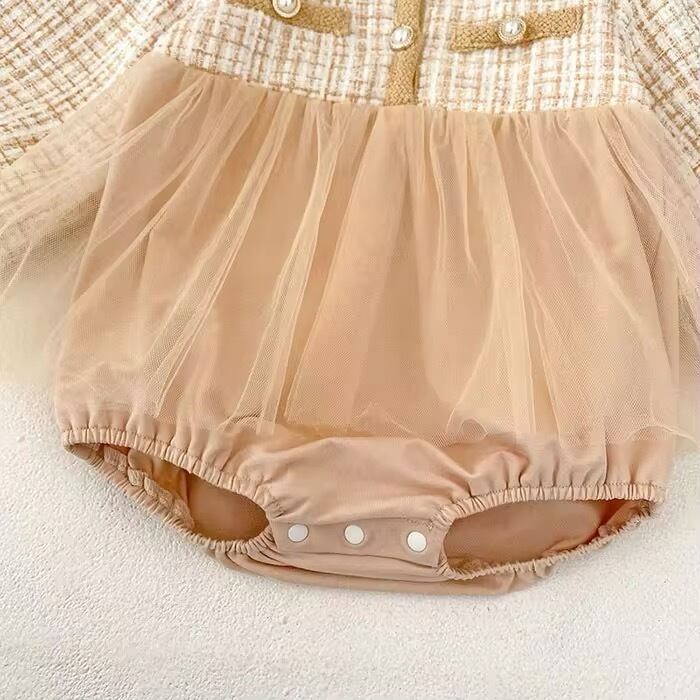【取寄】クラシカルガーリーなツイードチュールワンピース風ロンパース