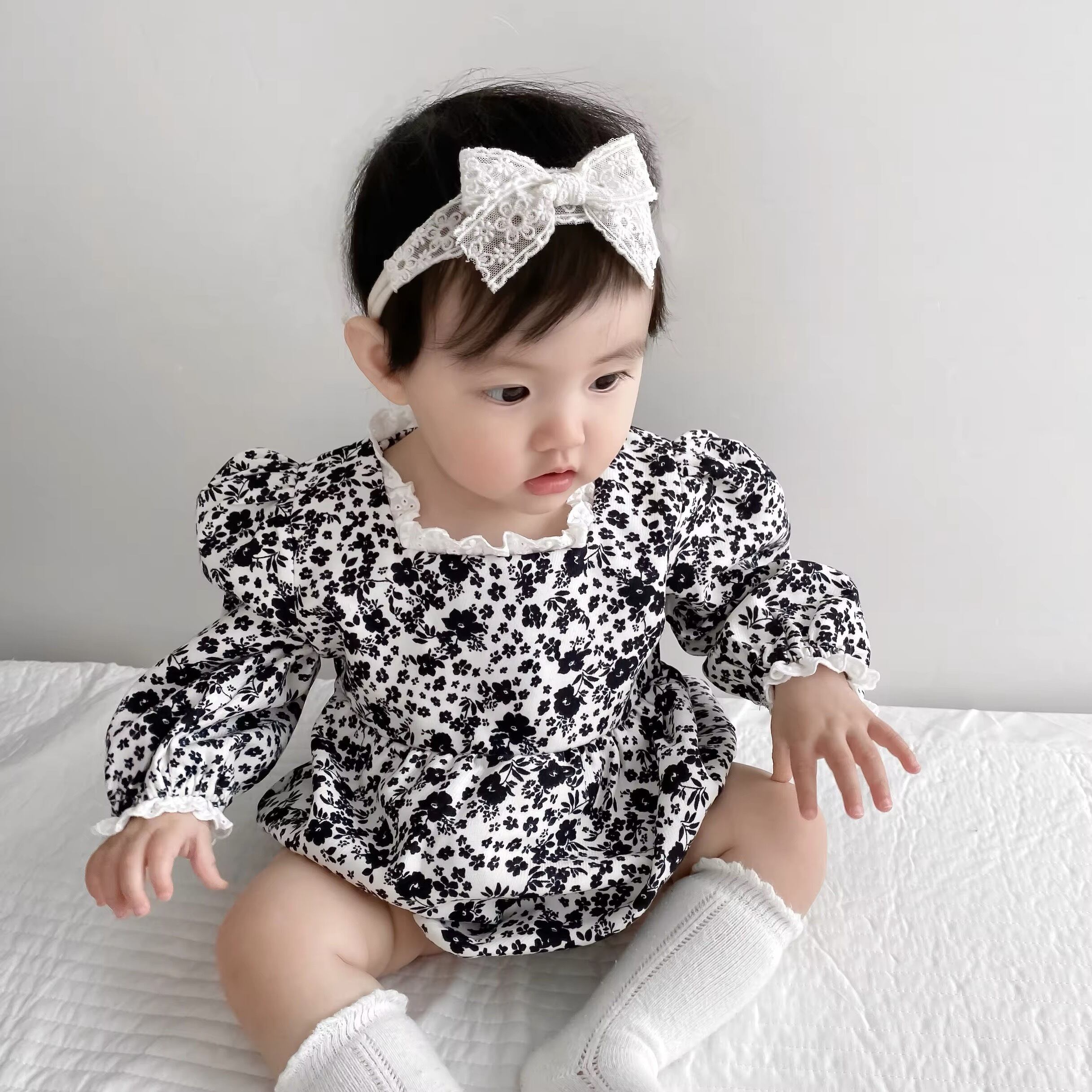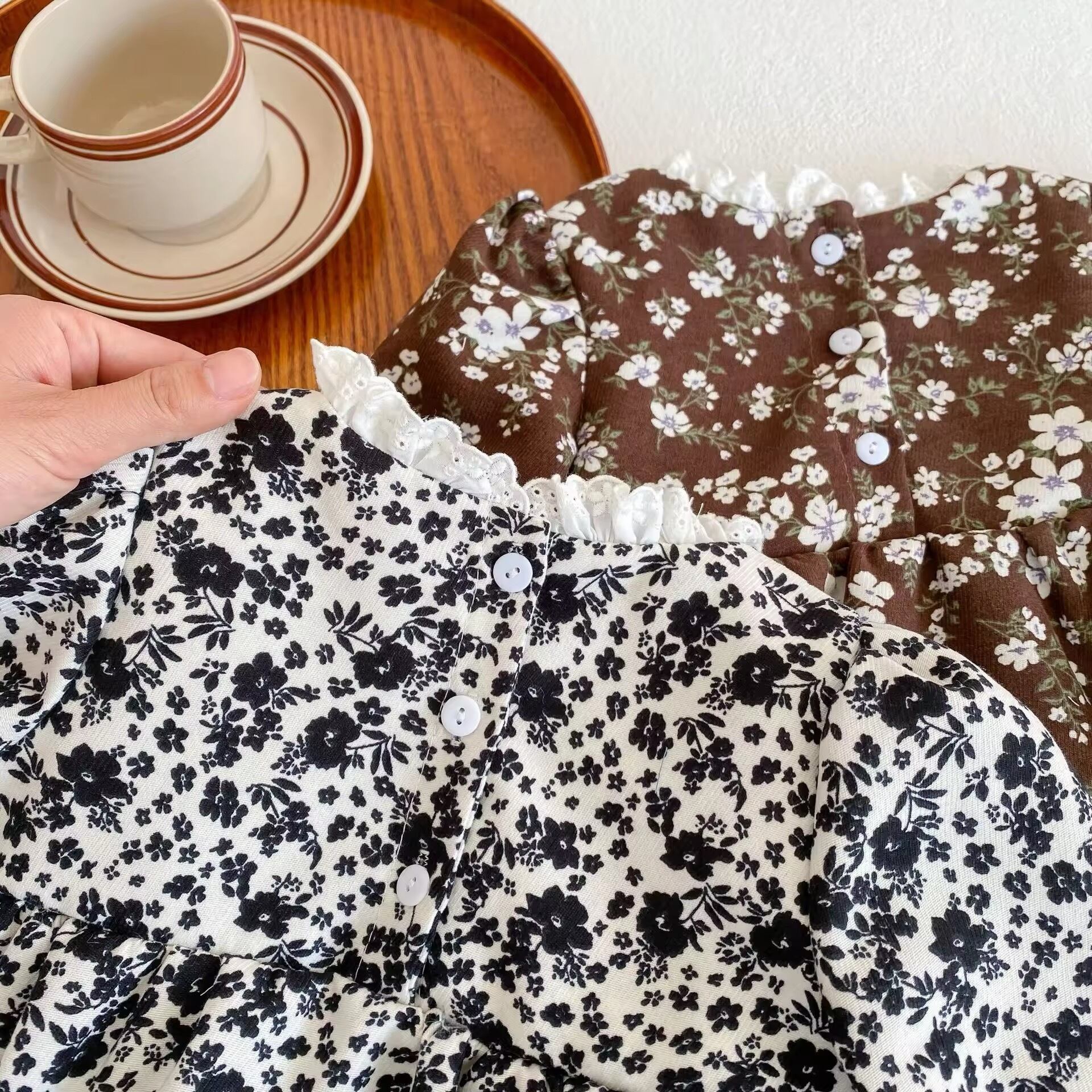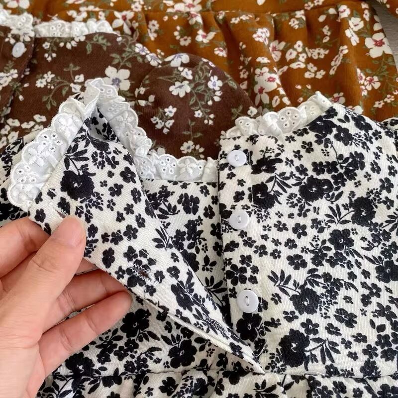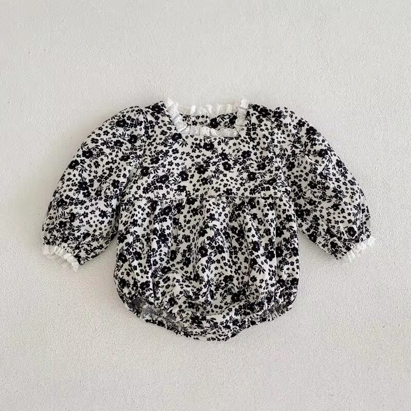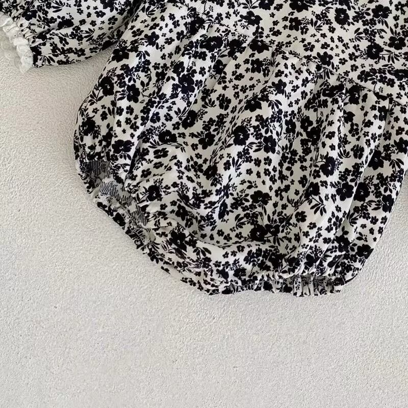 【取寄】スクエアネックフリルが大人かわいいシックな花柄ロンパース