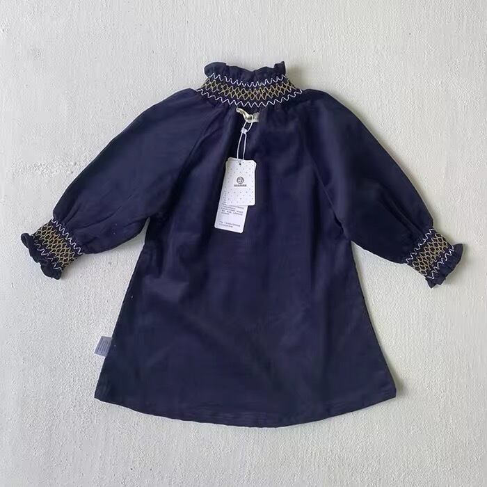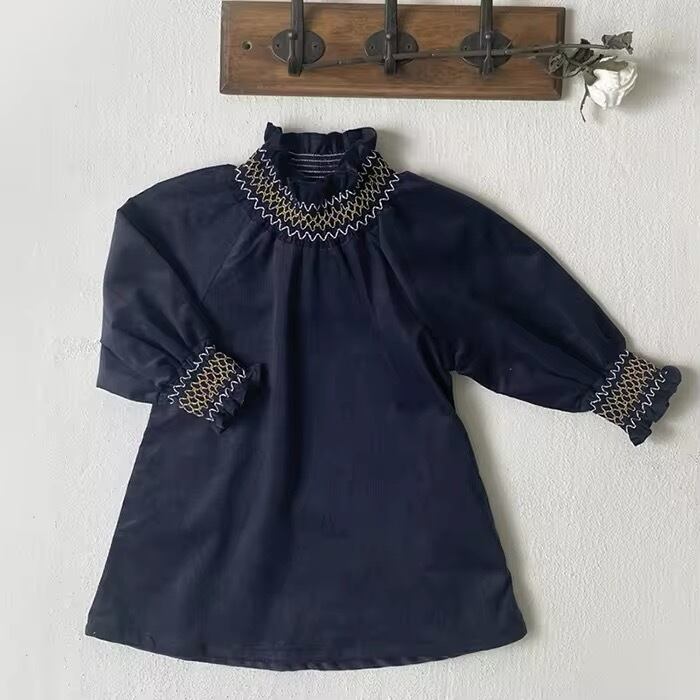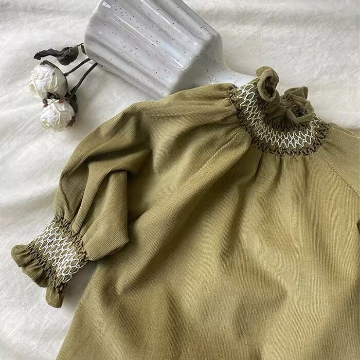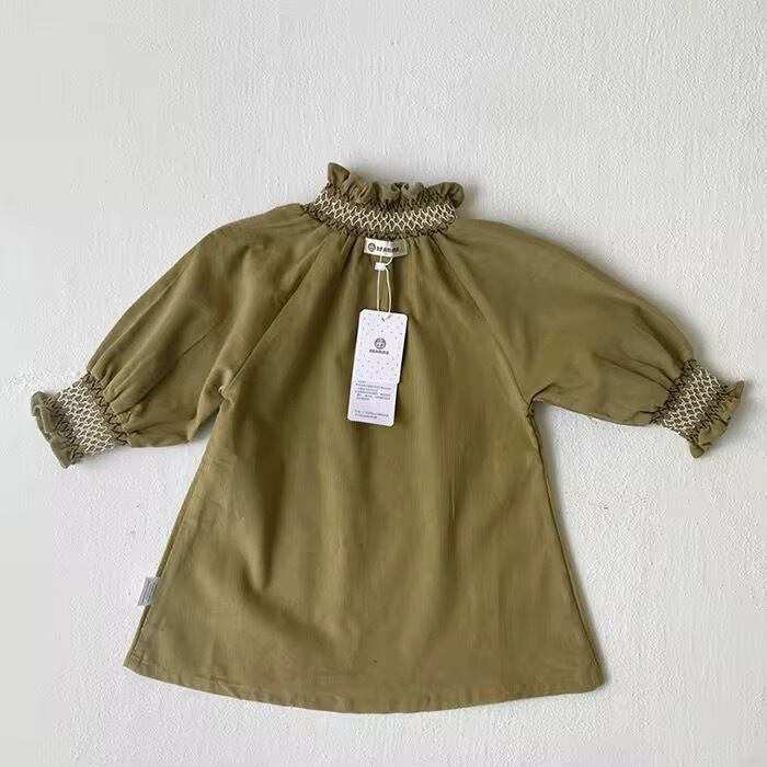 ハイネックフリルとスモッキングが上品で高見えするワンピースです♡