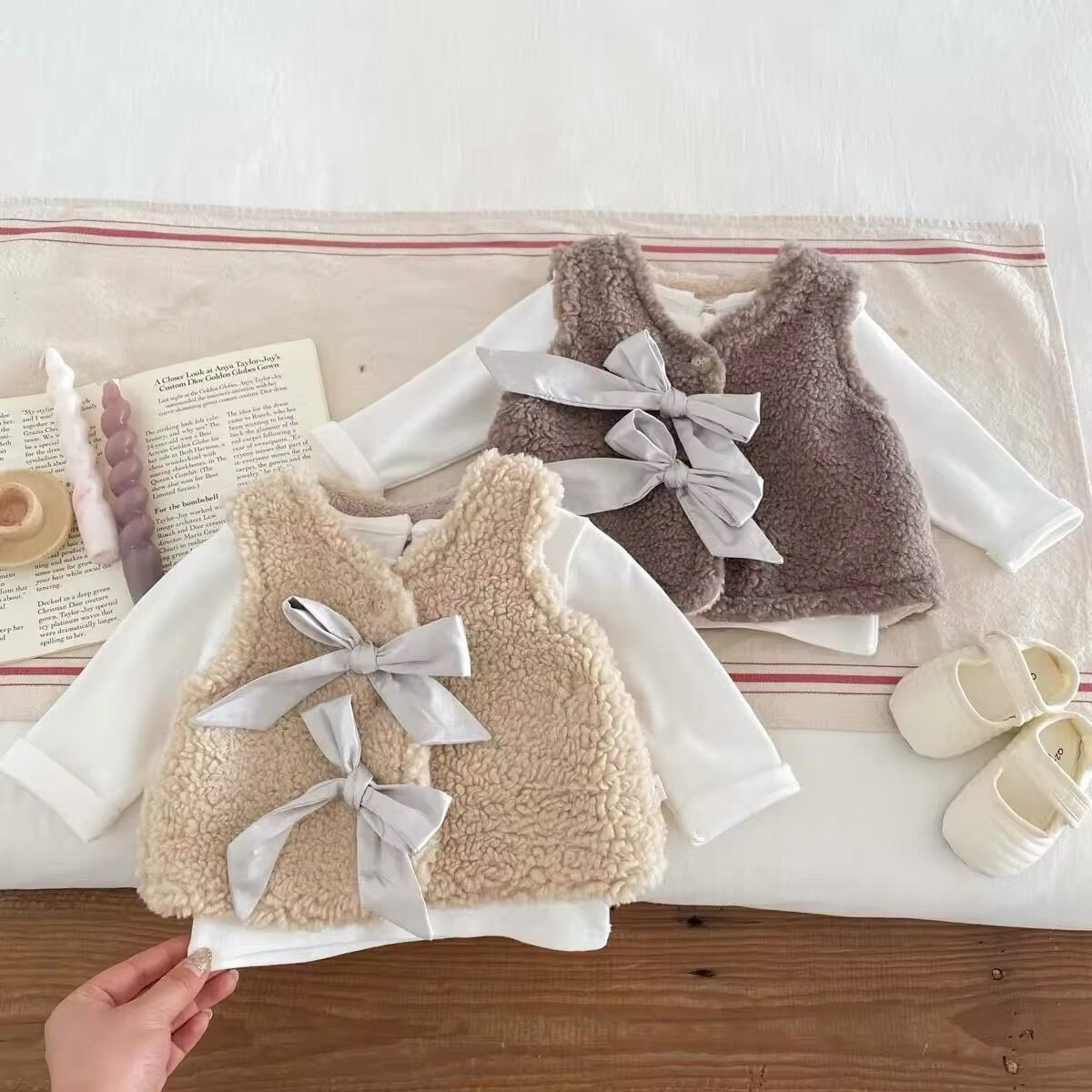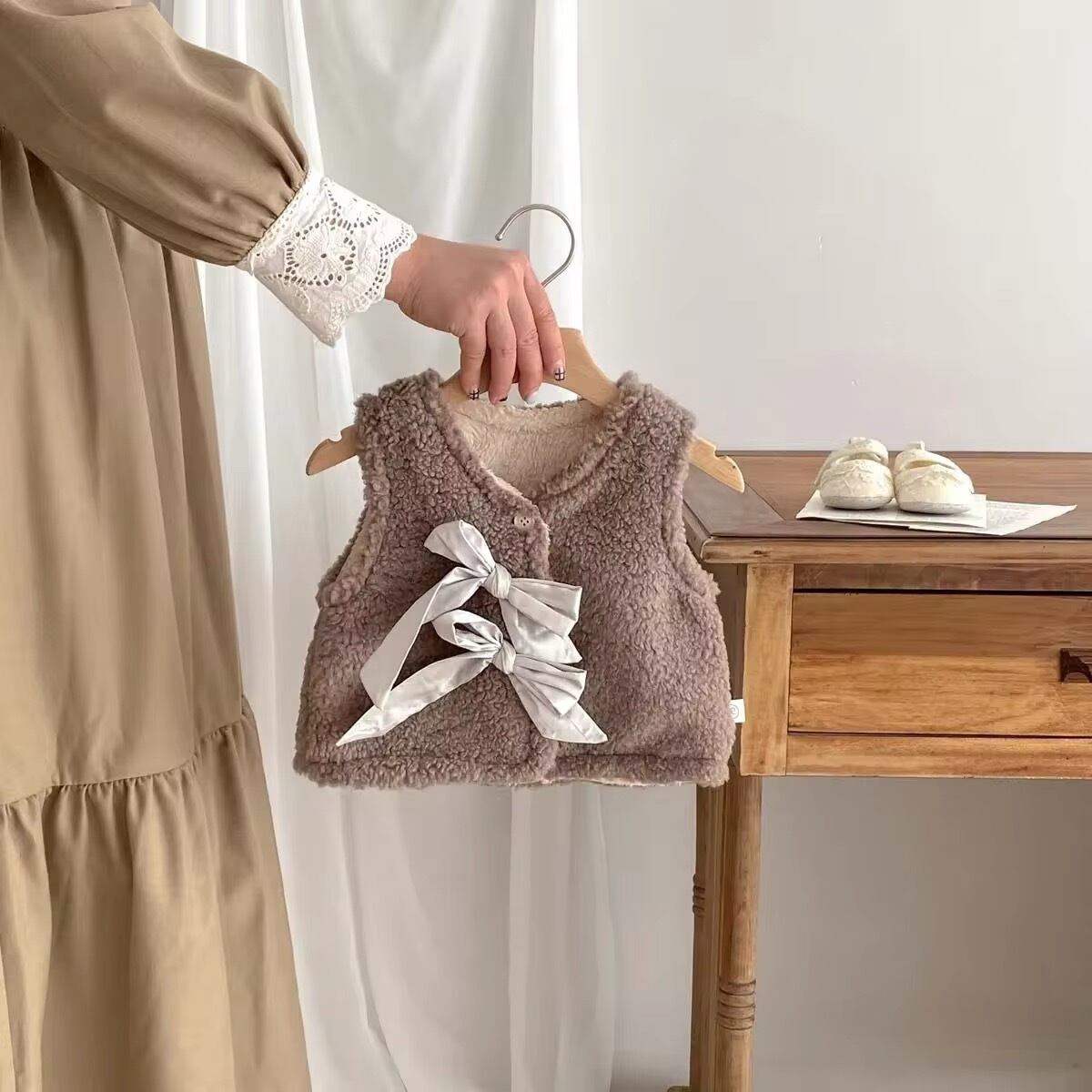 【取寄】トレンドのリボンがポイントのもこもこベスト