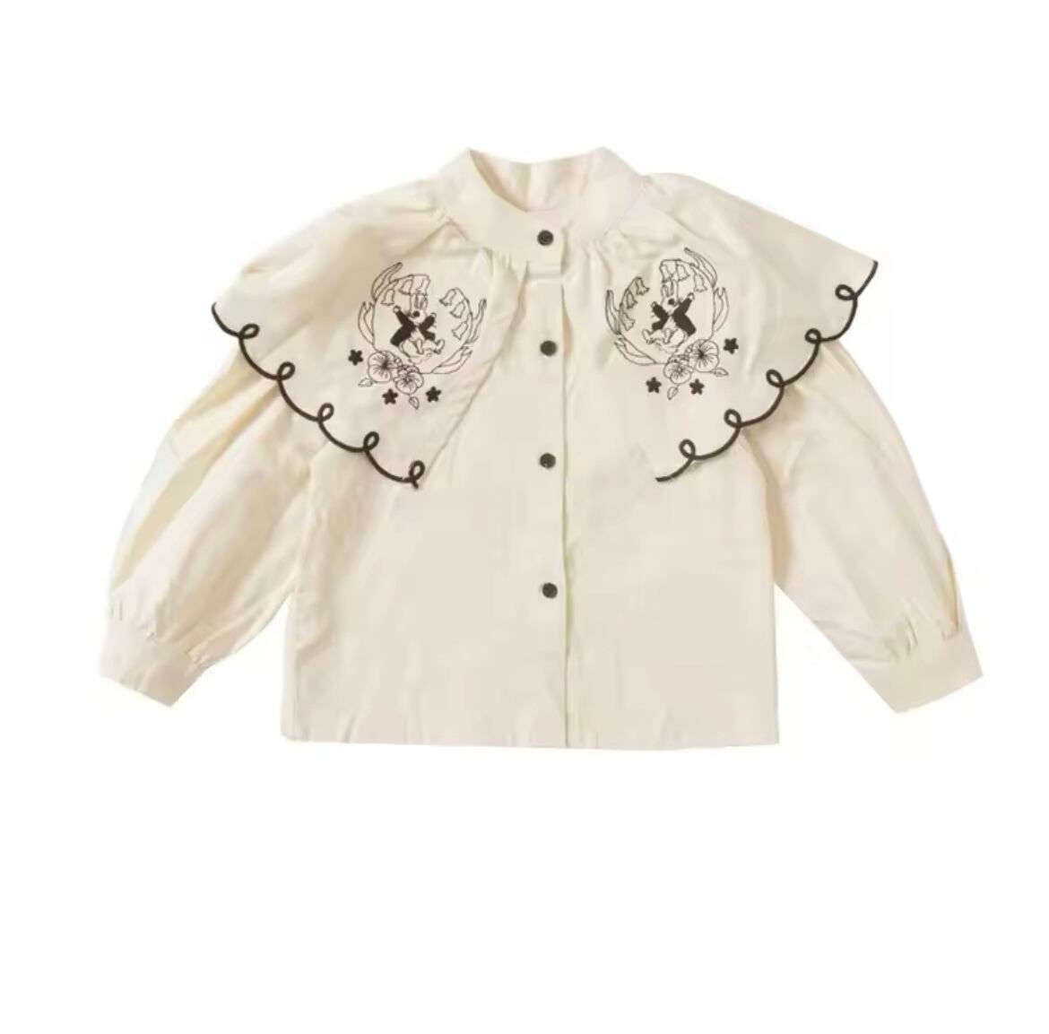 【取寄】人と差がつく!フリル刺繍ビックカラーブラウス