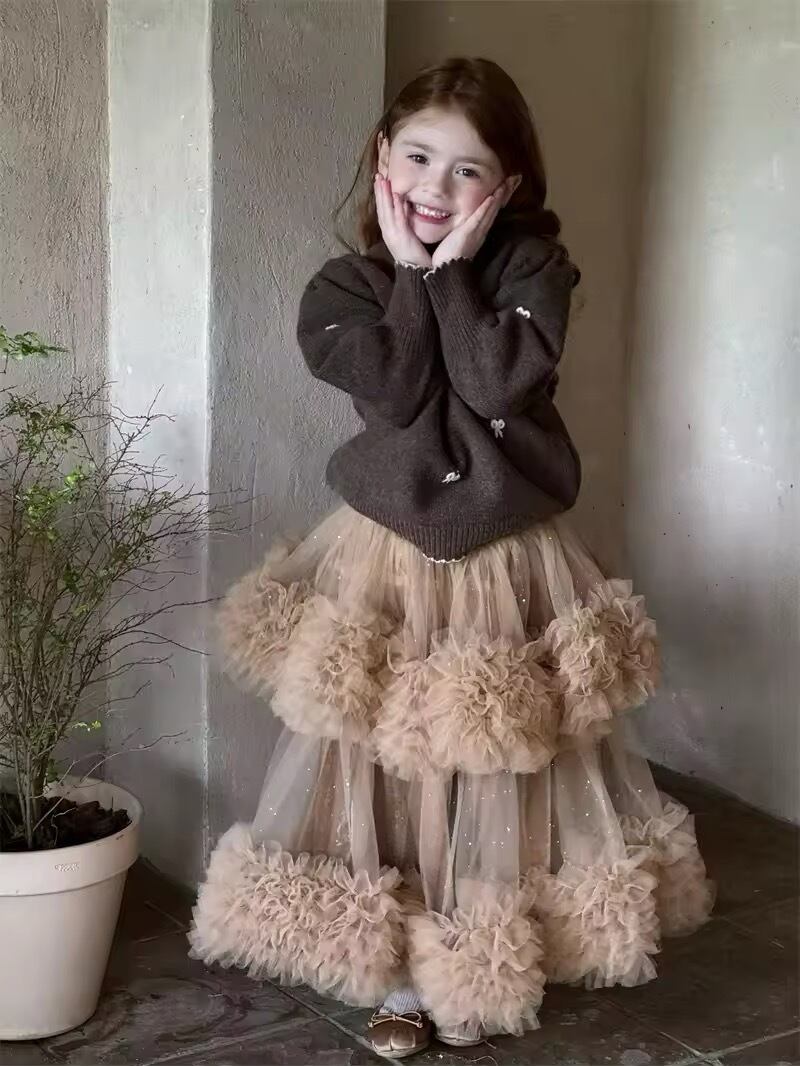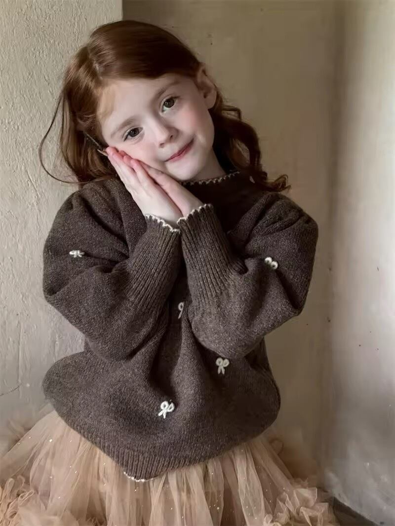 【取寄】流行りのリボンがキュートパフスリーブニットトップス